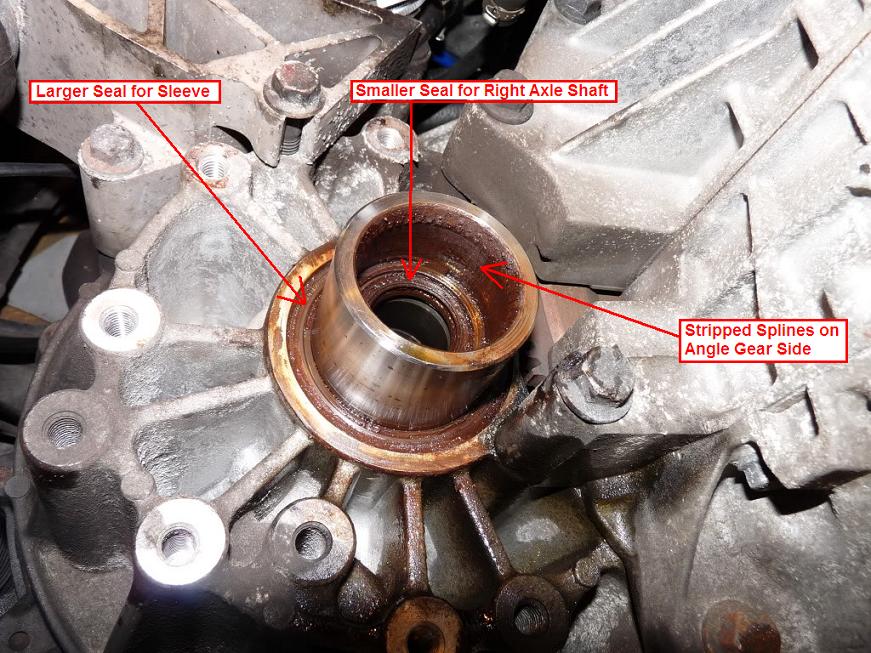 - The Right Shaft Axle passes right through the sleeve, through the smaller seal, into the Transmission itself.