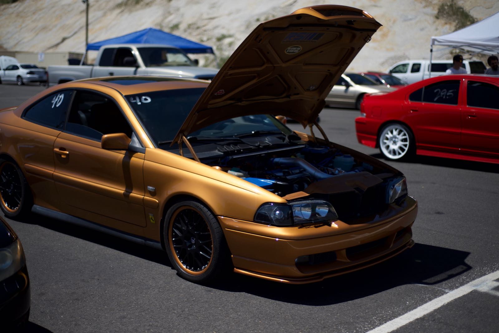 Photos and video of Brett Border’s 1998 Volvo C70 5-speed manual, in Saffron. He built this car: Darren sleeves and a tubular manifold/GT3076R turbo kit from RSI and a turbo tuner ECM with a TOBZ tune.