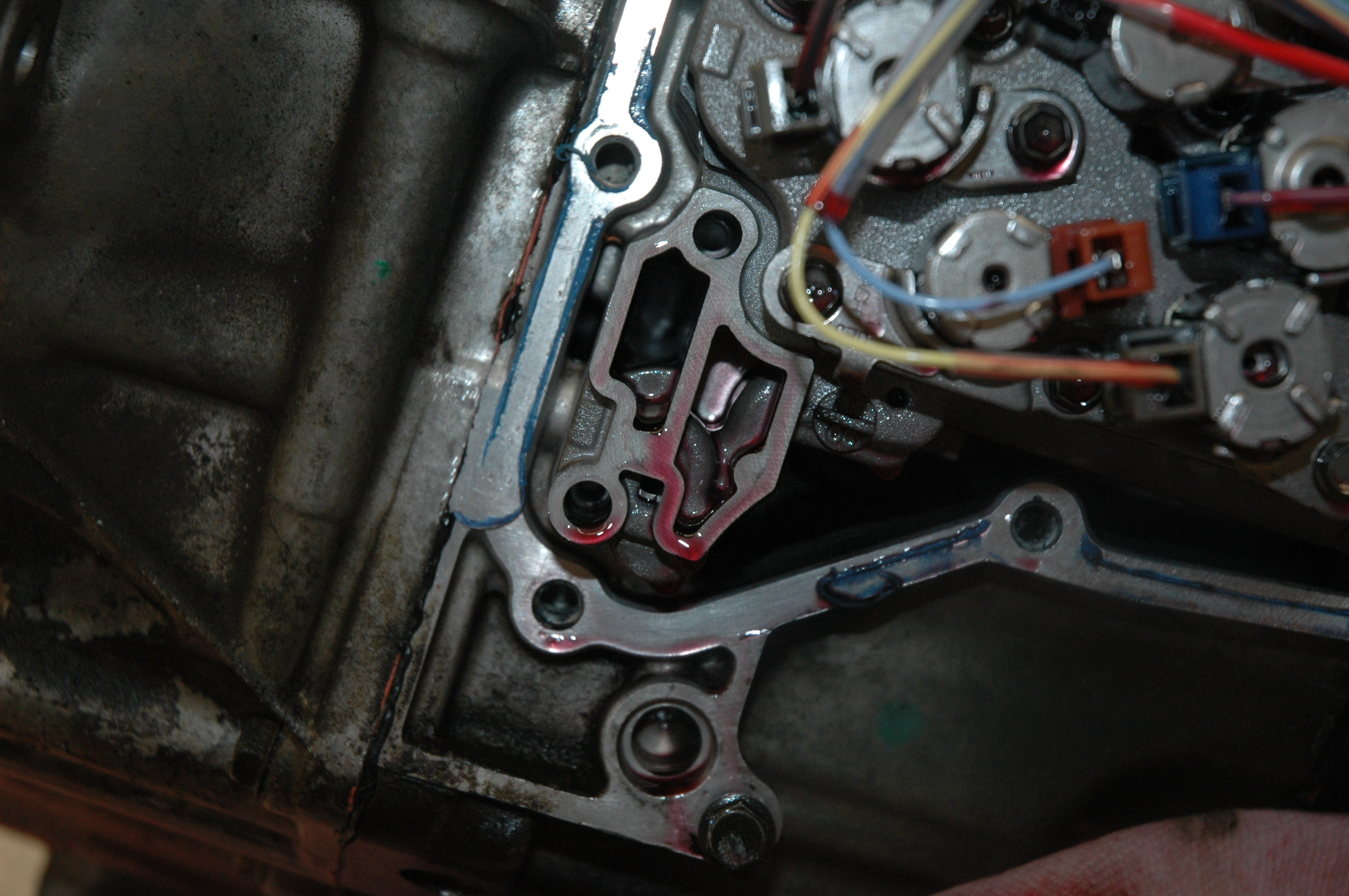From the valve body work that I've done there is access to the pump suction port (and top side of the filter) when a small cover is removed from the valve body on the lower left side. I'm thinking this access port could be used to back flush the filter while the drain plug is removed. Has anyone ever tried this? It might require a small plate to better seal the valve body opening and then compress air and fluid back flushing could be done. While back flushing what drains out of the transmission will be a good indication if this is effective or not.