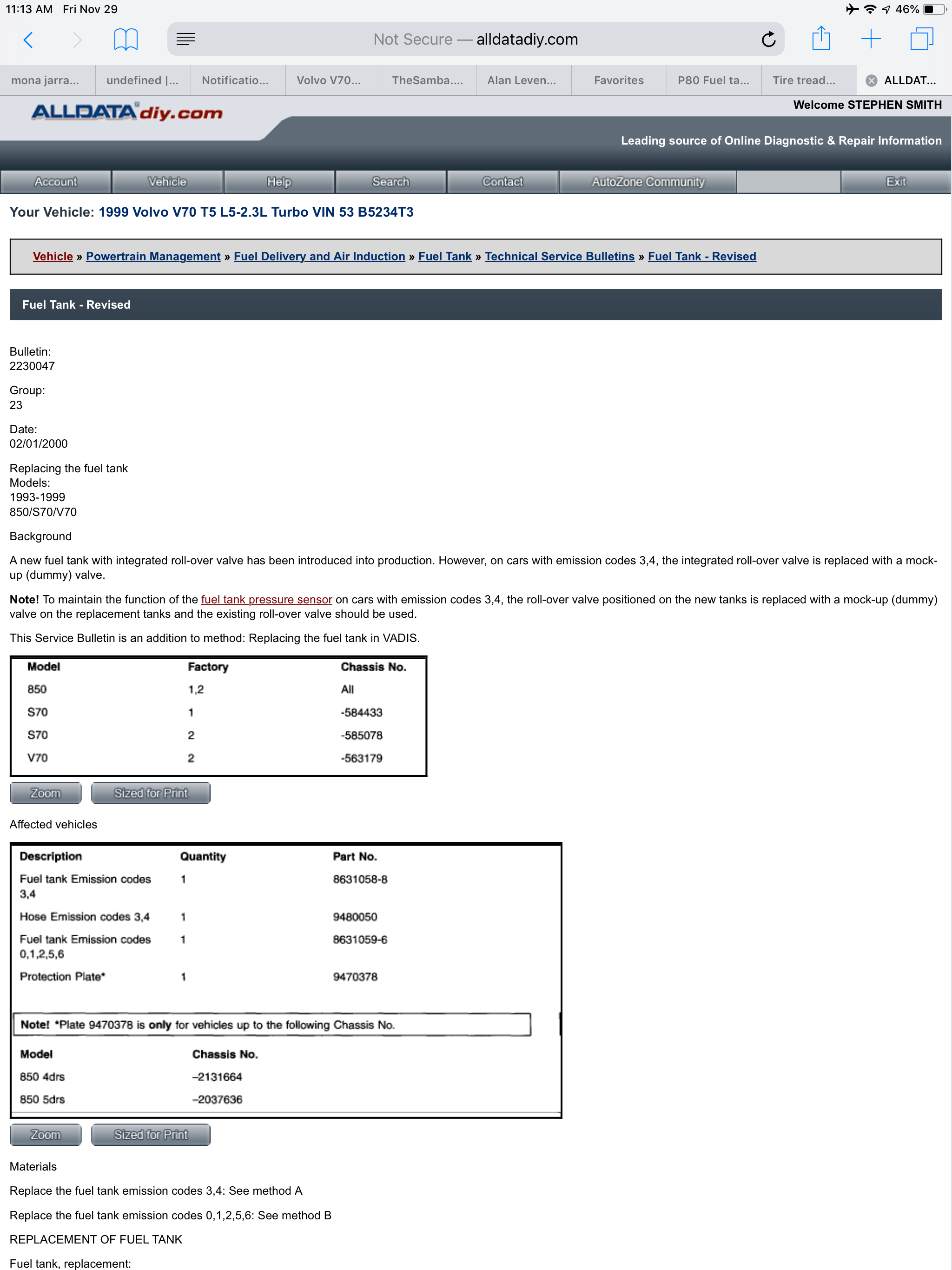 P80 Fuel tank drop in 30 minutes V70 FWD NA 1998