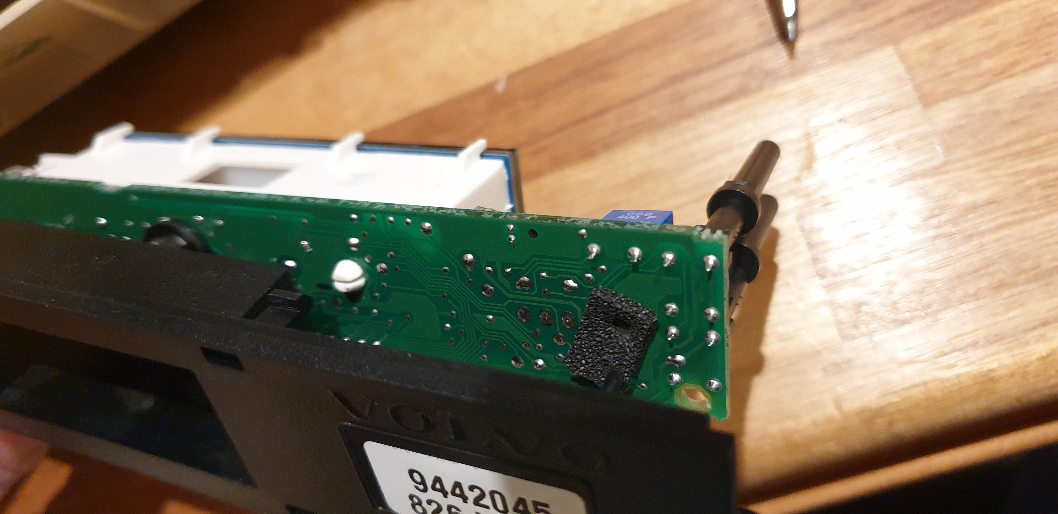 2). There are two 9442045 display units with different connectors. They both work. One of them has a 9 wire connector (not to be confused with the 10 wire connector of the large display with the trip computer) and one has 6 wires. They both work, because the 9 wire connector has 3 wires that are not connected insode the display on the print board.