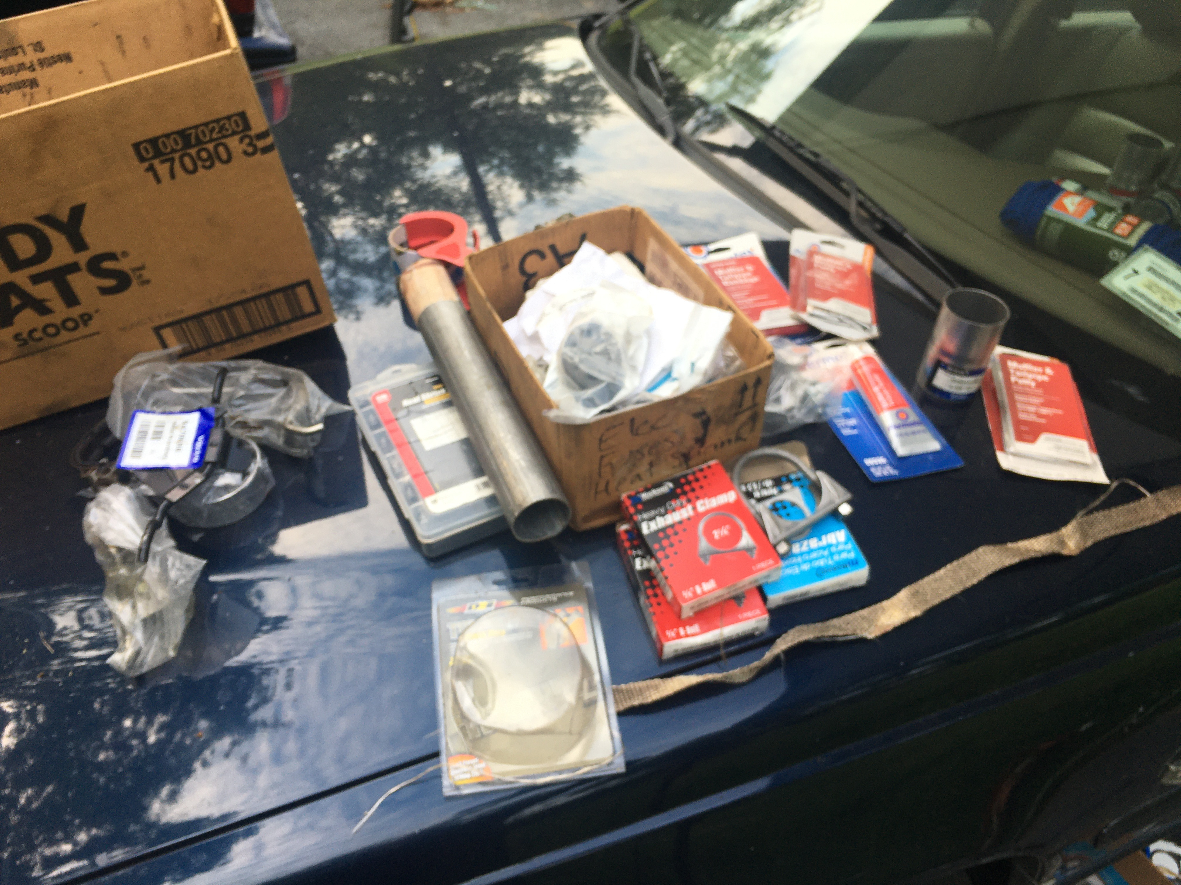 I’ve got the mandrel expander, fiberglass exhaust pack, permeatex cement, and clamps and connectors.