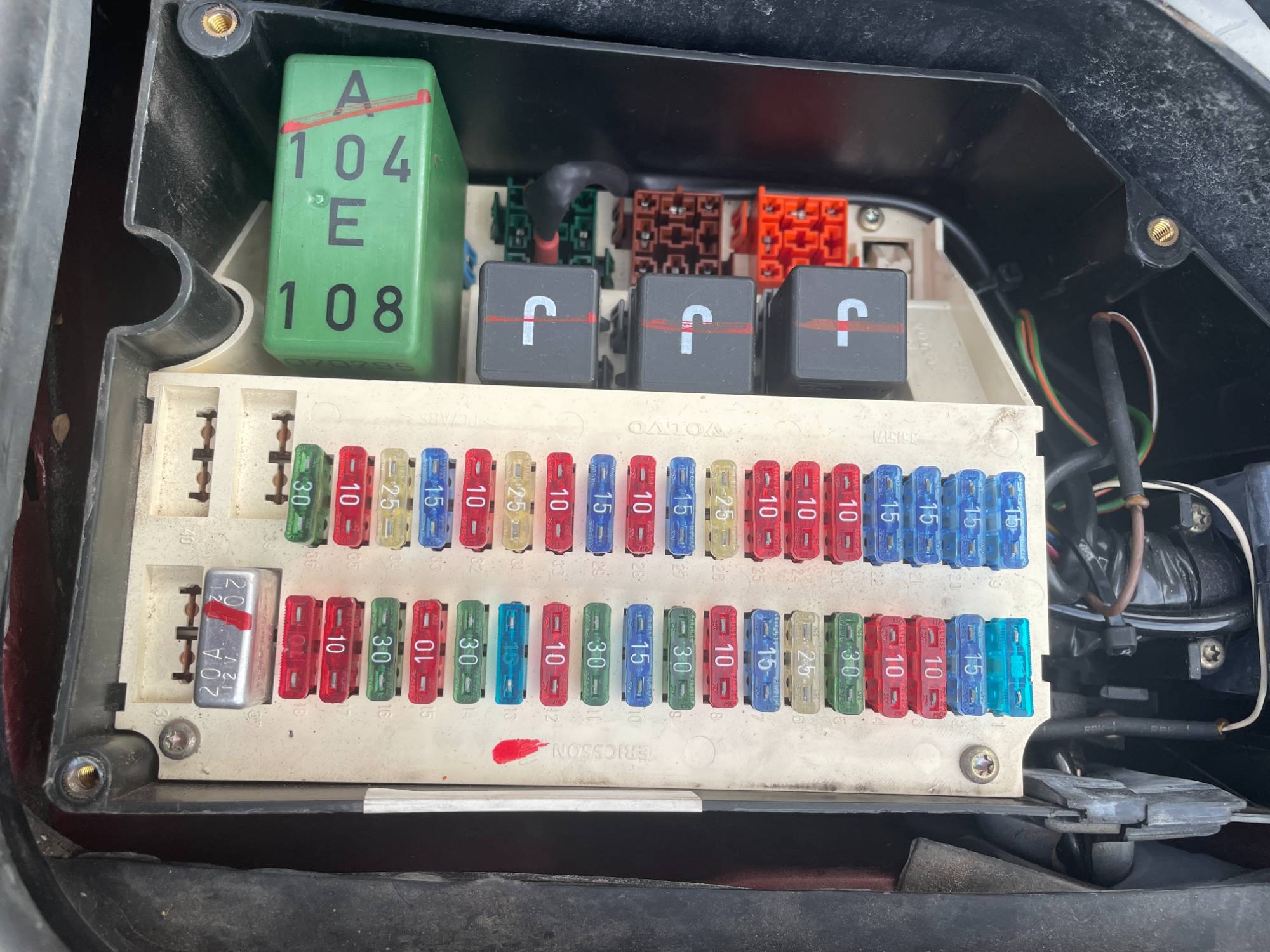 Got a post-purchase inspection on my newly-acquired '96 854 Sedan, one, among several glaring issues, was some issue regarding either the fuel pump or its relay, upon inspection, it looks as though these relays are missing altogether. There are a couple wires plugged into the number 103 slot. Not sure if I have something wrong or this is simply a lower spec or something.