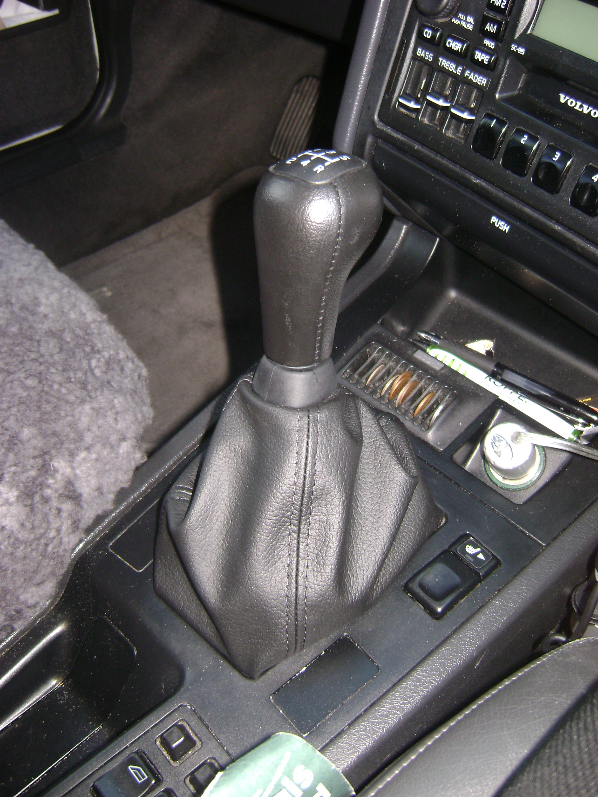 At long last... success! I had hoped that I could replace the boot and reuse the shift knob, but after I finally broke down and went to a Volvo dealership, I decided that I should just order a new shift knob too since I would have to destroy the old one to get it off (it's held on because it locks into a groove on the metal gear shift, so it's not removeable or reuseable). I ordered part 6801666-6 (Boot or gaiter) for $56 and 6814305-6 (Gear shift knob) for $54. It took just one day for the parts to arrive. The parts people were also kind enough to print out the VADIS instructions for me, which I'll include here and supplement with my own details.