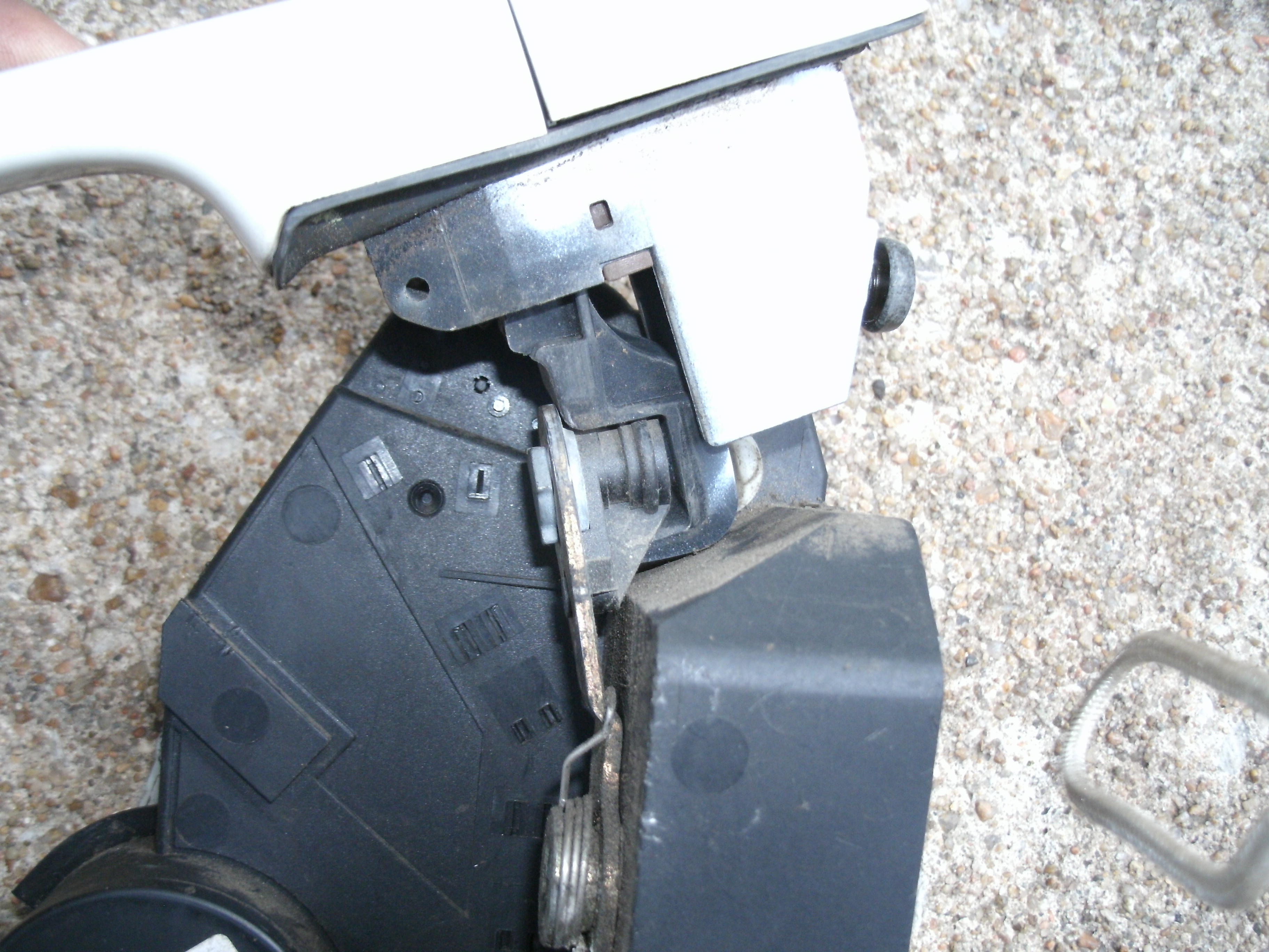 This picture is of a front door latch but a rear door handle. It is slightly different and doesn't have the key cylinder and rod but here is how it needs to engage the latch mechanism.