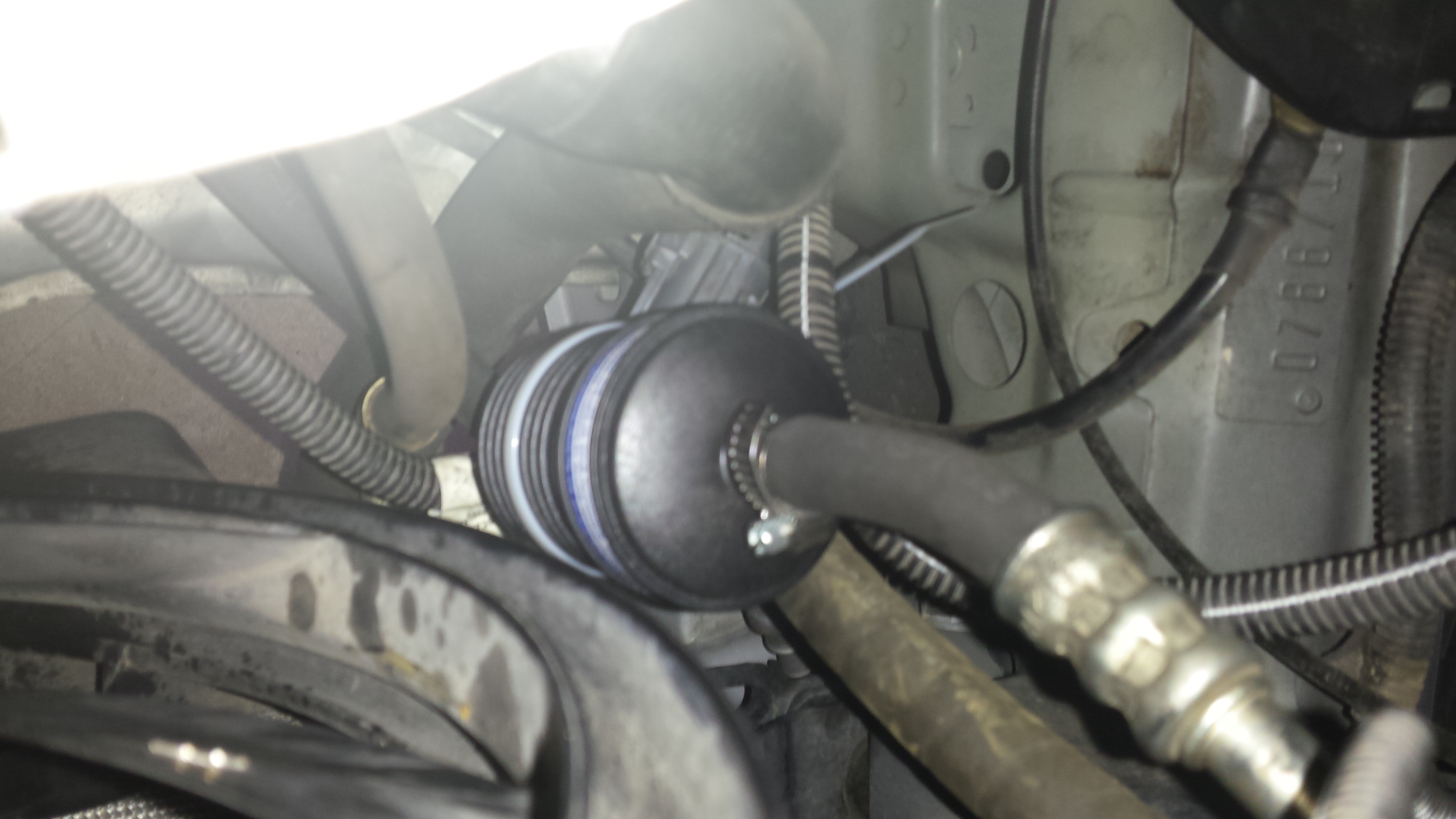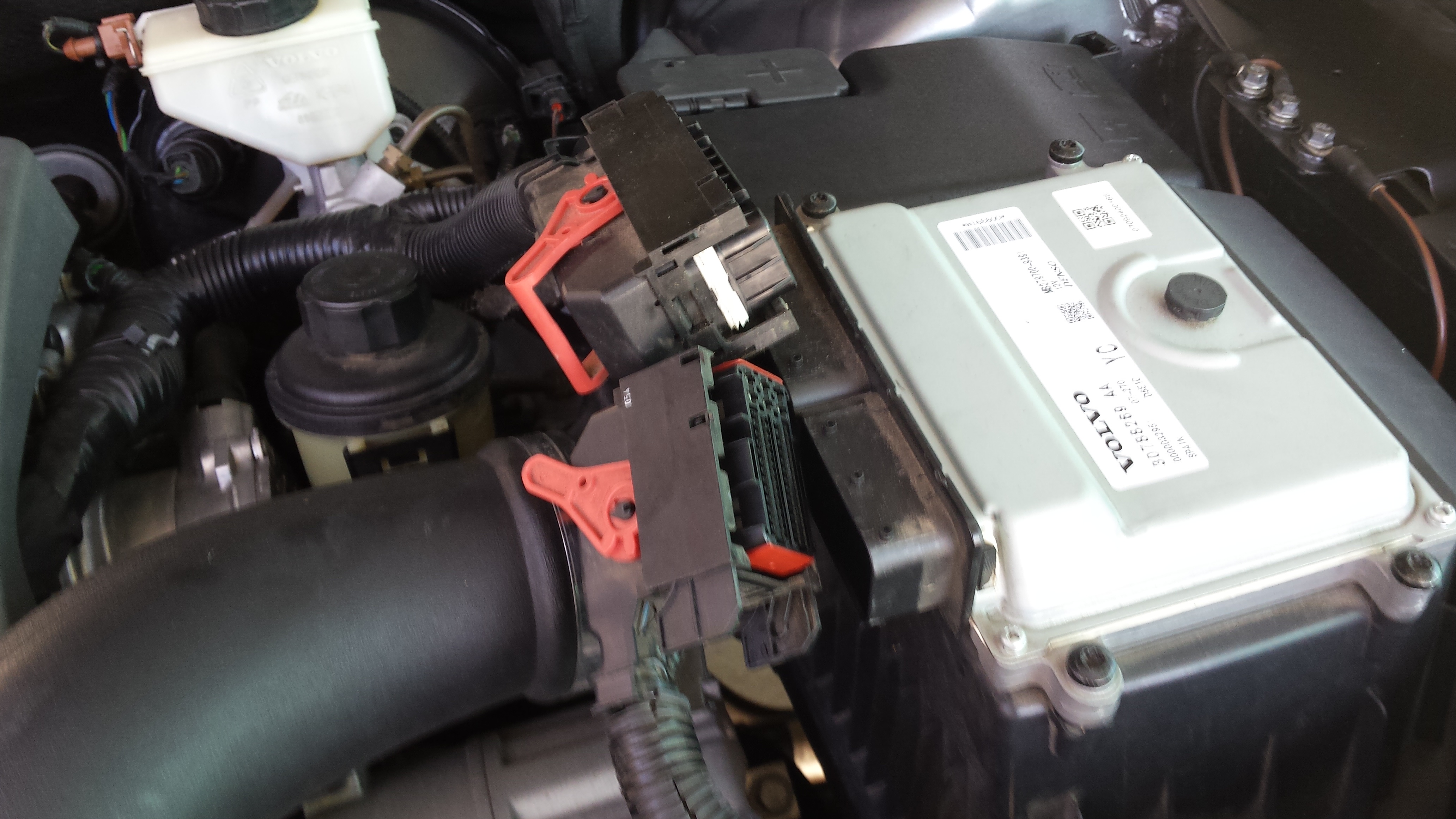5. Top side on the car remove the air box two electrical plugs and the MAF plug, be careful of the plastic clips, it is really easy to brake them off if you are not careful.. Next under the airbox to the left is the Torx 55 plug, this is not a T50, it is a T55, your standard Torx kit will most likely not have a T55, since you will need a T55 for the XC90 brake calipers it is something you should have on hand. I needed to use a socket joint because I could not get on the plug straight. Also I needed to tap the end of the socket extension to get the T55 to seat all the way. Once that was seated it took some torque to get that loose. This plug also had an oring seal so it could be resealed if the oring was not damaged.