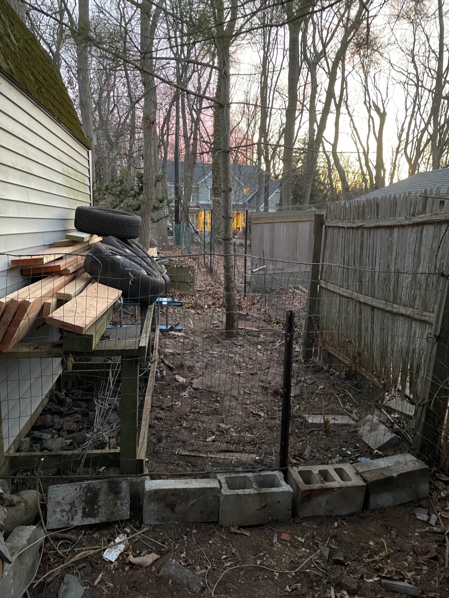 While I was in California at a conference I pulled out the wallet and paid my guy to do a job I was dreading, cleanup behind my parts shed. This will make a lumber amd tire rack