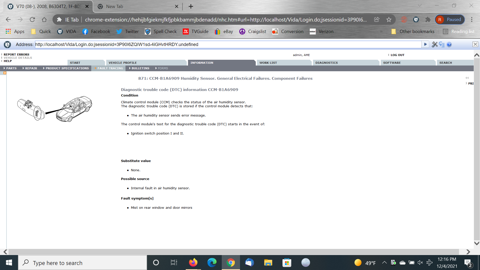 Hey all.. I've been chasing my tail on this one. So, I just bought a 2008 XC70 and the CEL popped up. At the top of the list it stated .. humidity sensor.. does anyone know what that is and it's location?