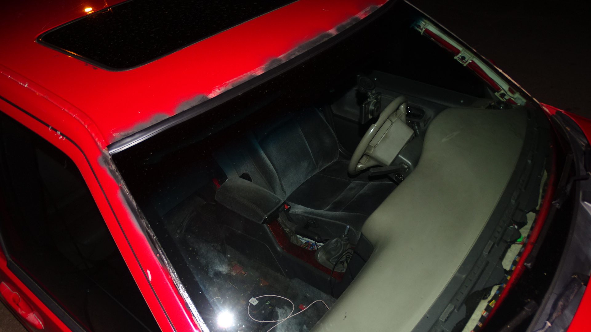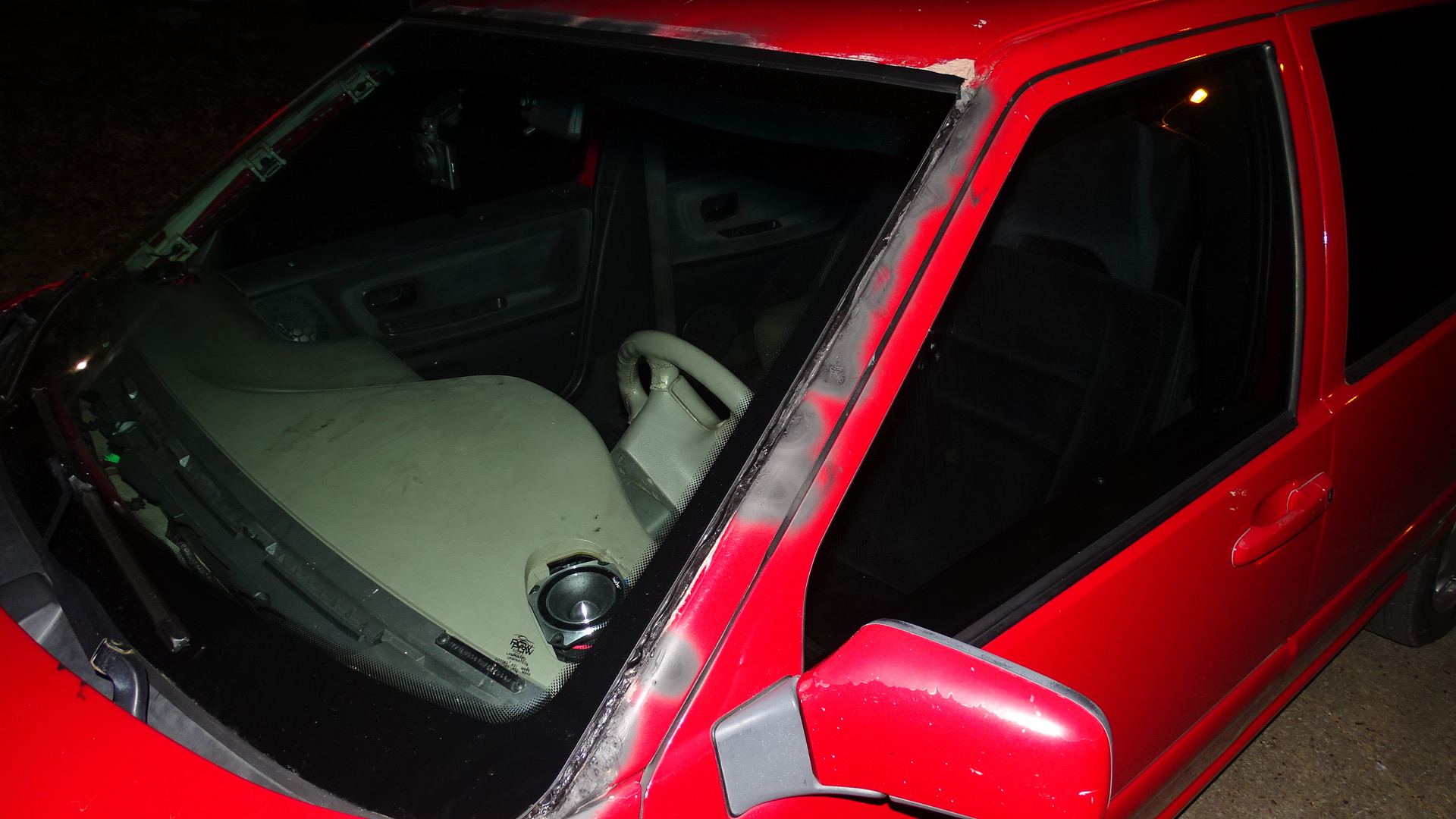 roof is dented (someone vandalized it at night)
