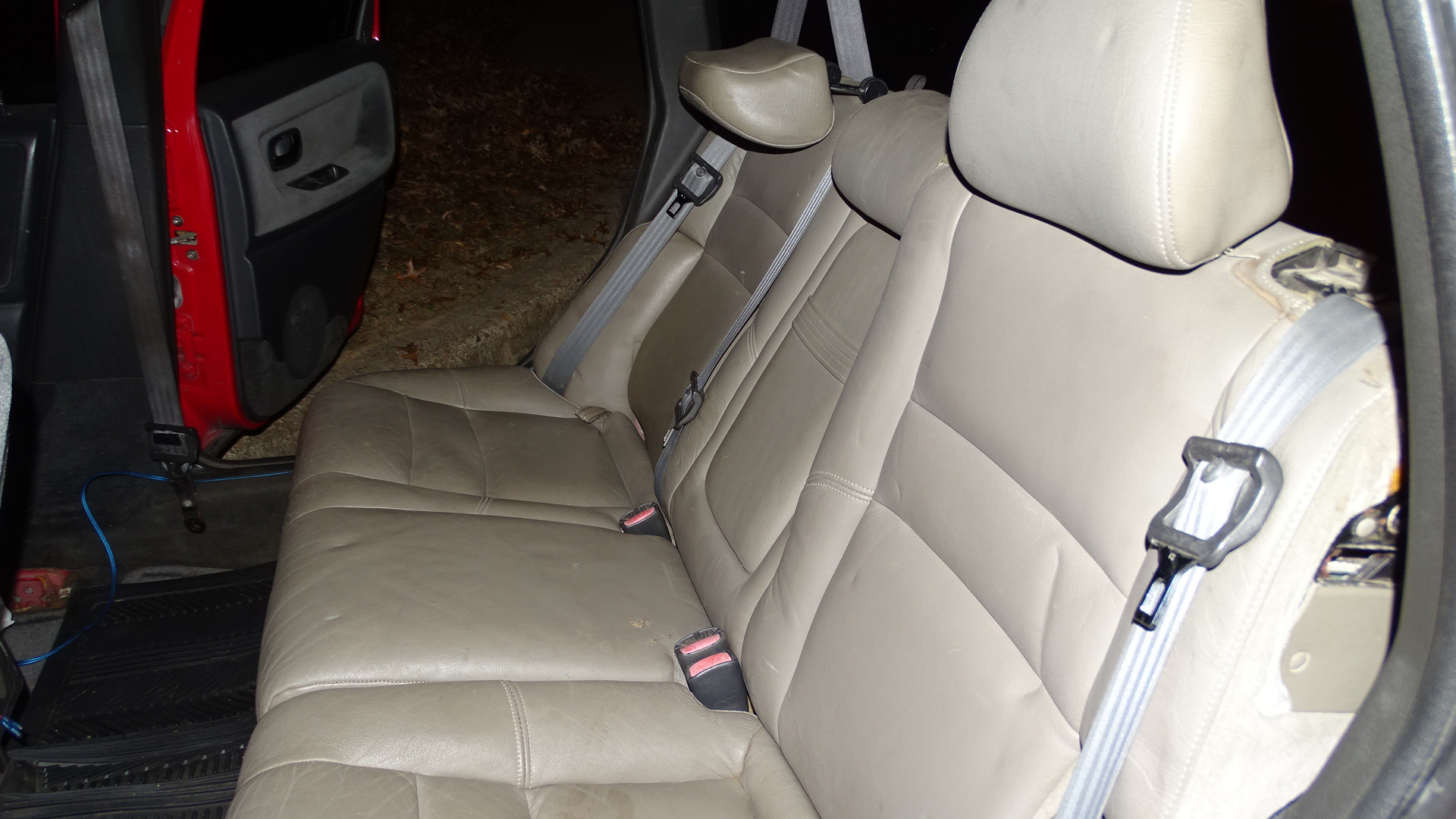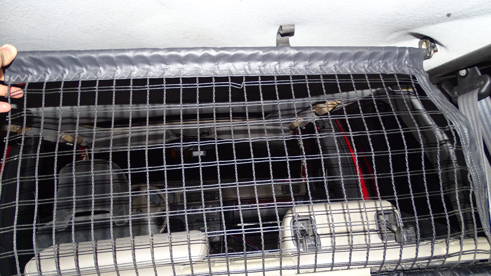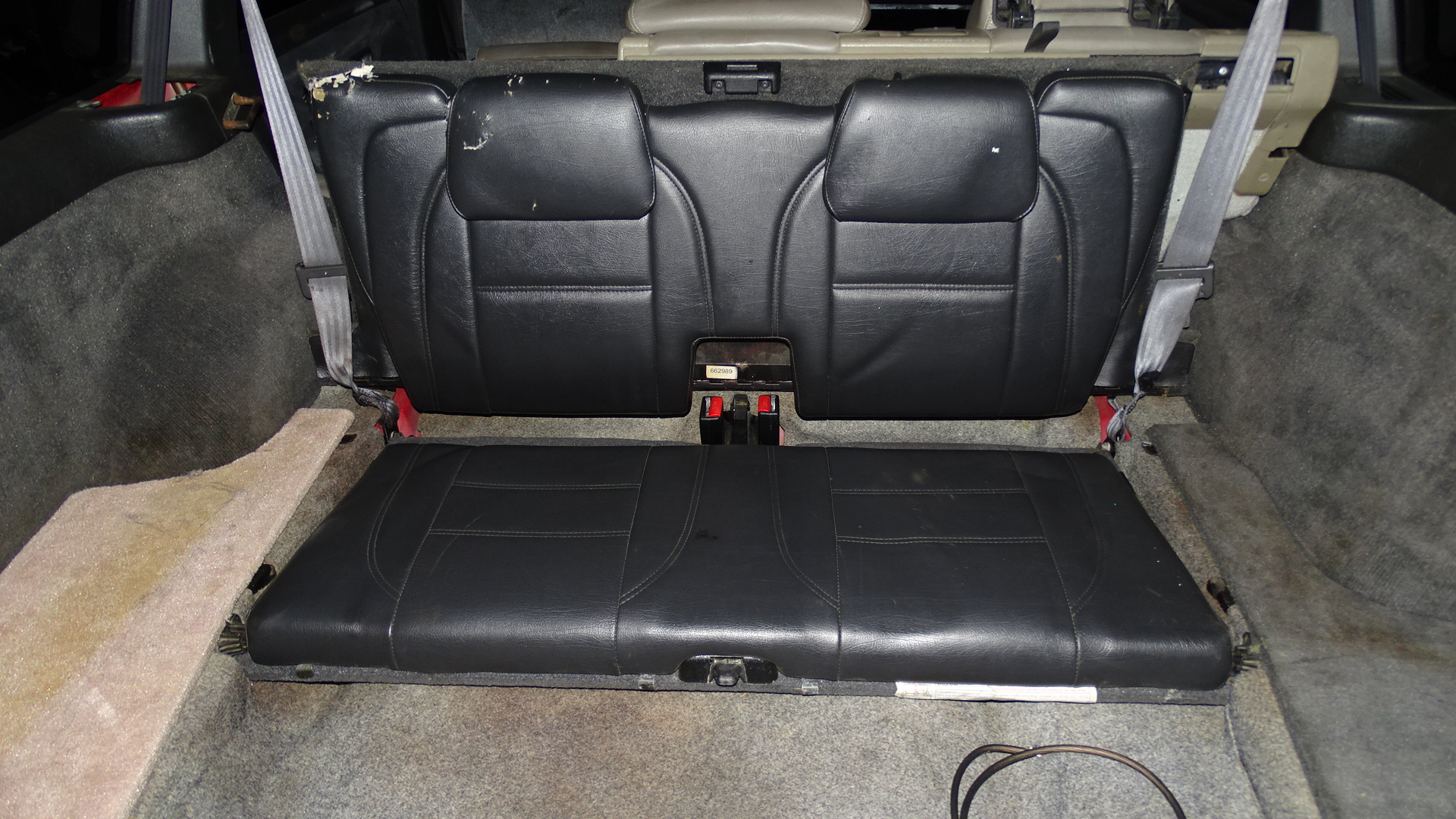 oak leather rear seats w/ cargo net (cloth cut and trimmed with 3rd row seat catch in place)