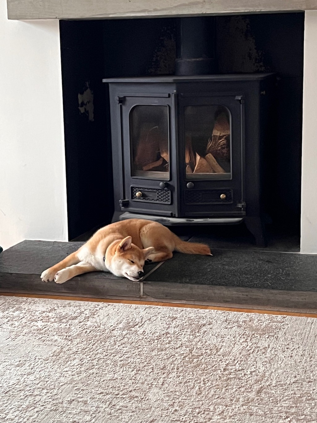 If it was too hot for the bean bag the cold granite hearth was perfect for cooling down