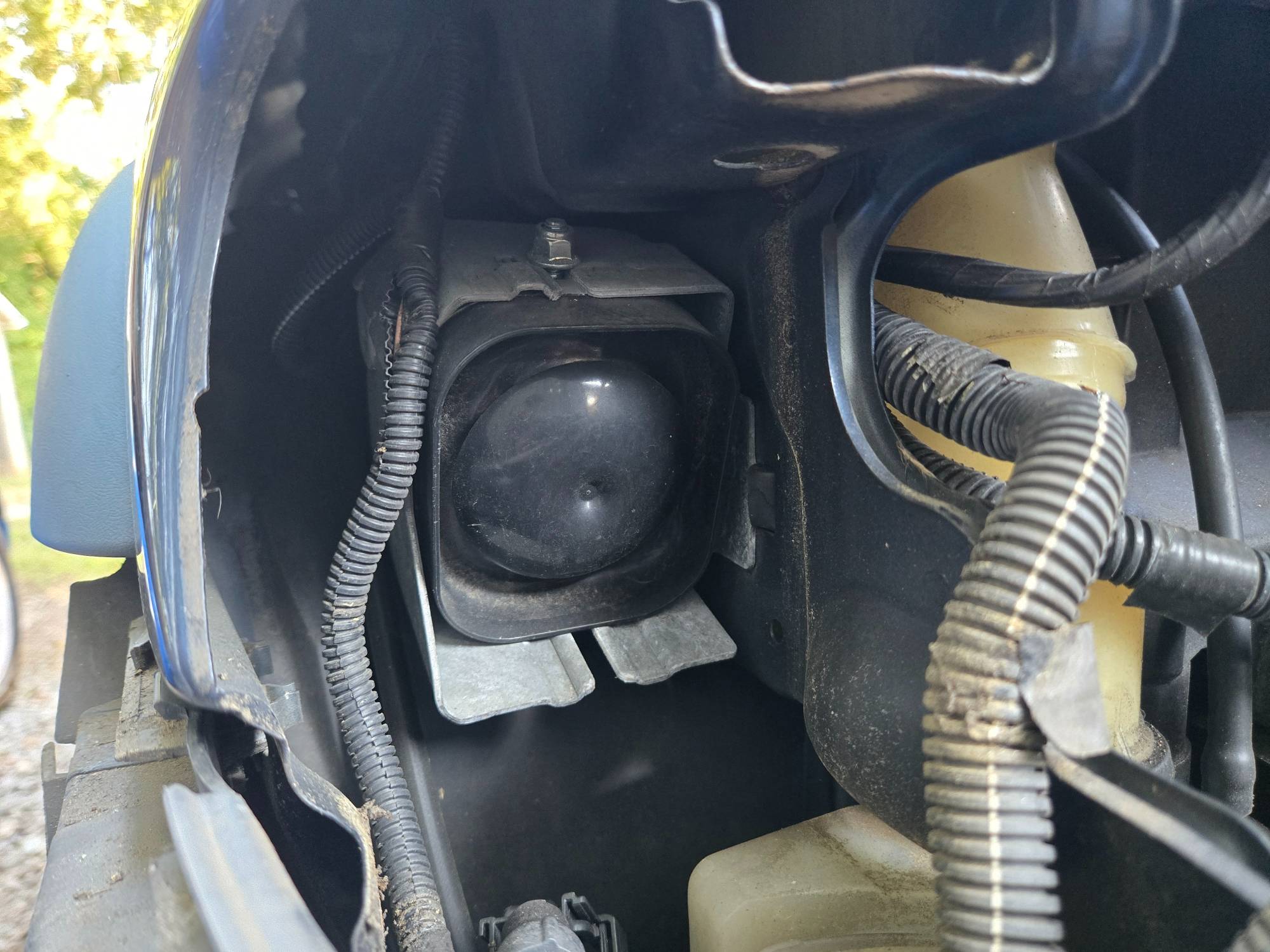 Even though the new alarm comes with a shiny new house, I kept the old one so I didn't have to grind on a safety bolt and fender liner rivets.