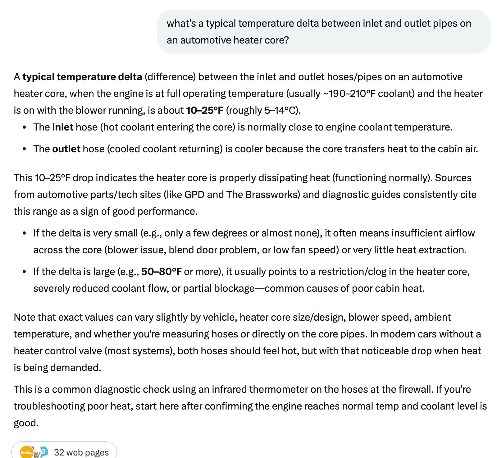 This post got me wondering what a normal temp delta is, and according to AI yours is good. I don't think it's the heater core.