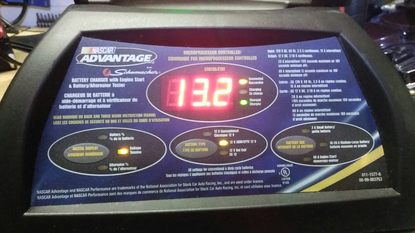 2) My Nascar Advantage Battery Charger is fully automatic microprocessor controlled (see attachments) (https://www.policeauctionscanada.com/Li ... er-134266A).