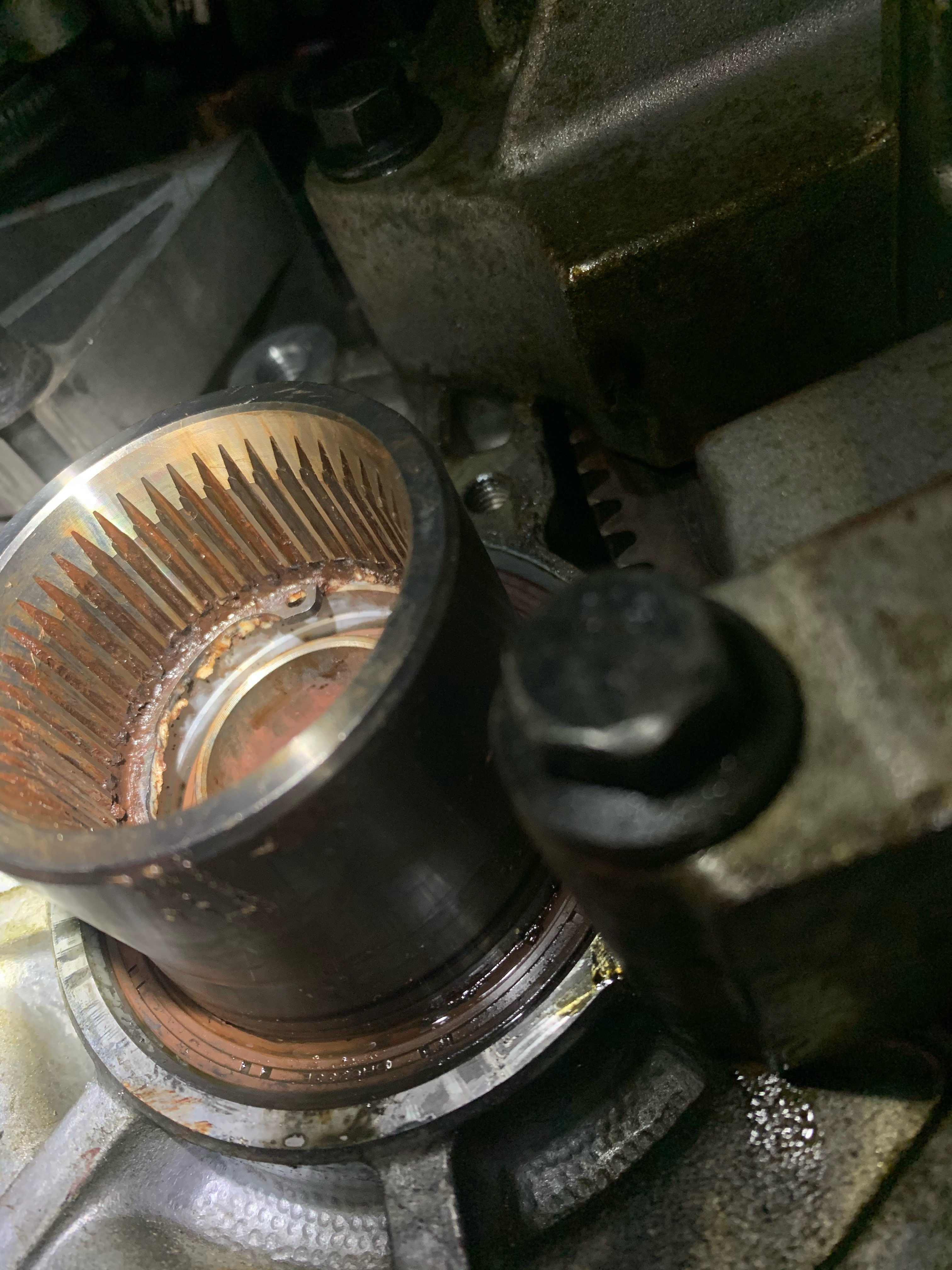 OK so while servicing the Haldex (viewtopic.php?f=9&t=96141) I was thankfully goaded into pulling the angle gear to check and possibly service that if needed while the prop shaft is out. I'm making a separate thread here on the angle gear to seek opinions on the condition of the splines on the angle gear and collar.