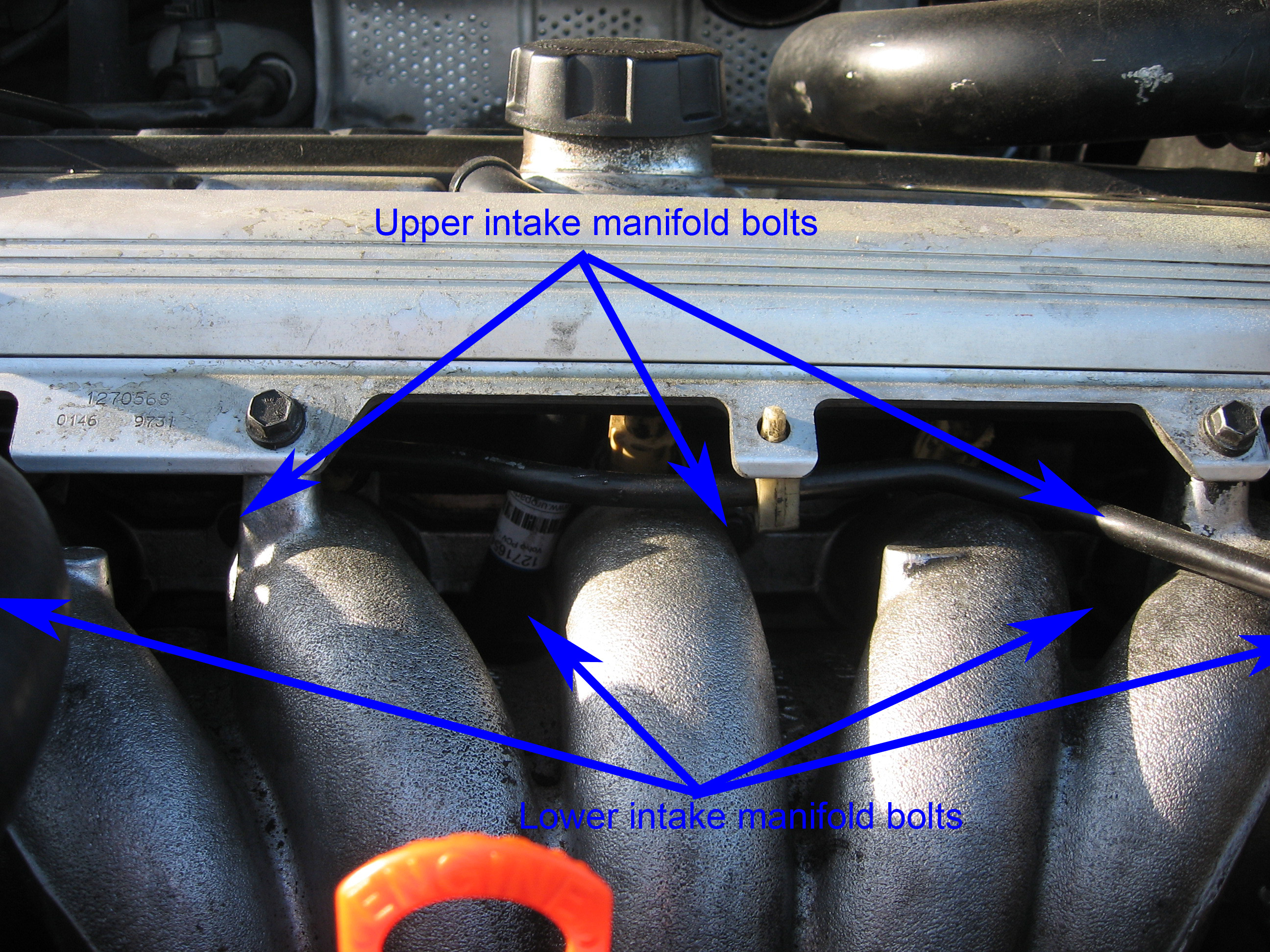 Hopefully you can do this without dropping screws about 12 times like I did and having to take the manifold off again - this became quite a frustrating process, and I eventually ended up losing 1 screw and had to run to the hardware store to find a replacement. You would not BELIEVE how hard it is to find an M7 screw at an auto parts store.