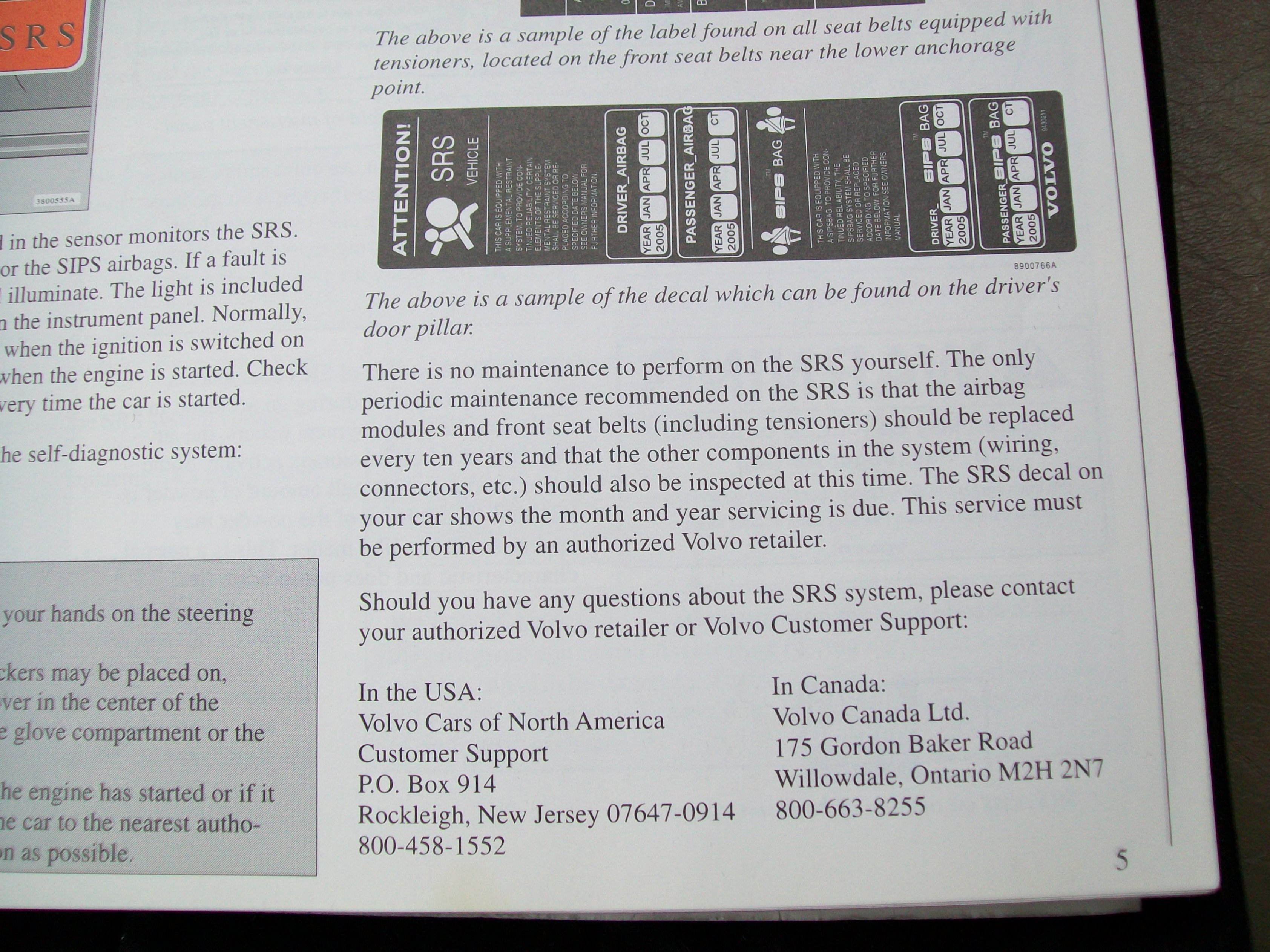 Since I was unable to find a copy of the referenced TSBs on the web I contacted Volvo North America last week to request the most current Volvo policy with regards to airbag expiration. I received an email response today (May 19, 2010) which stated: