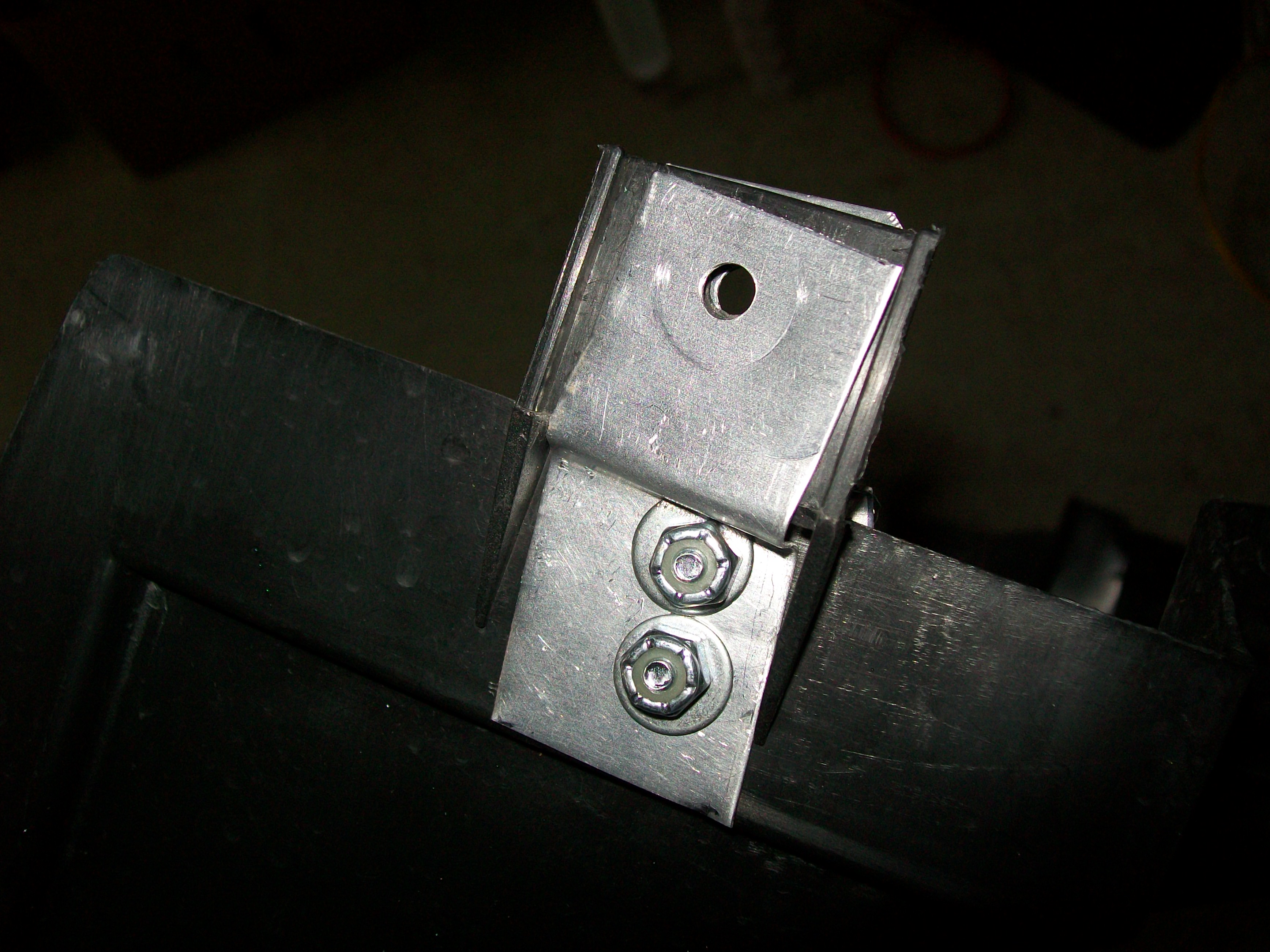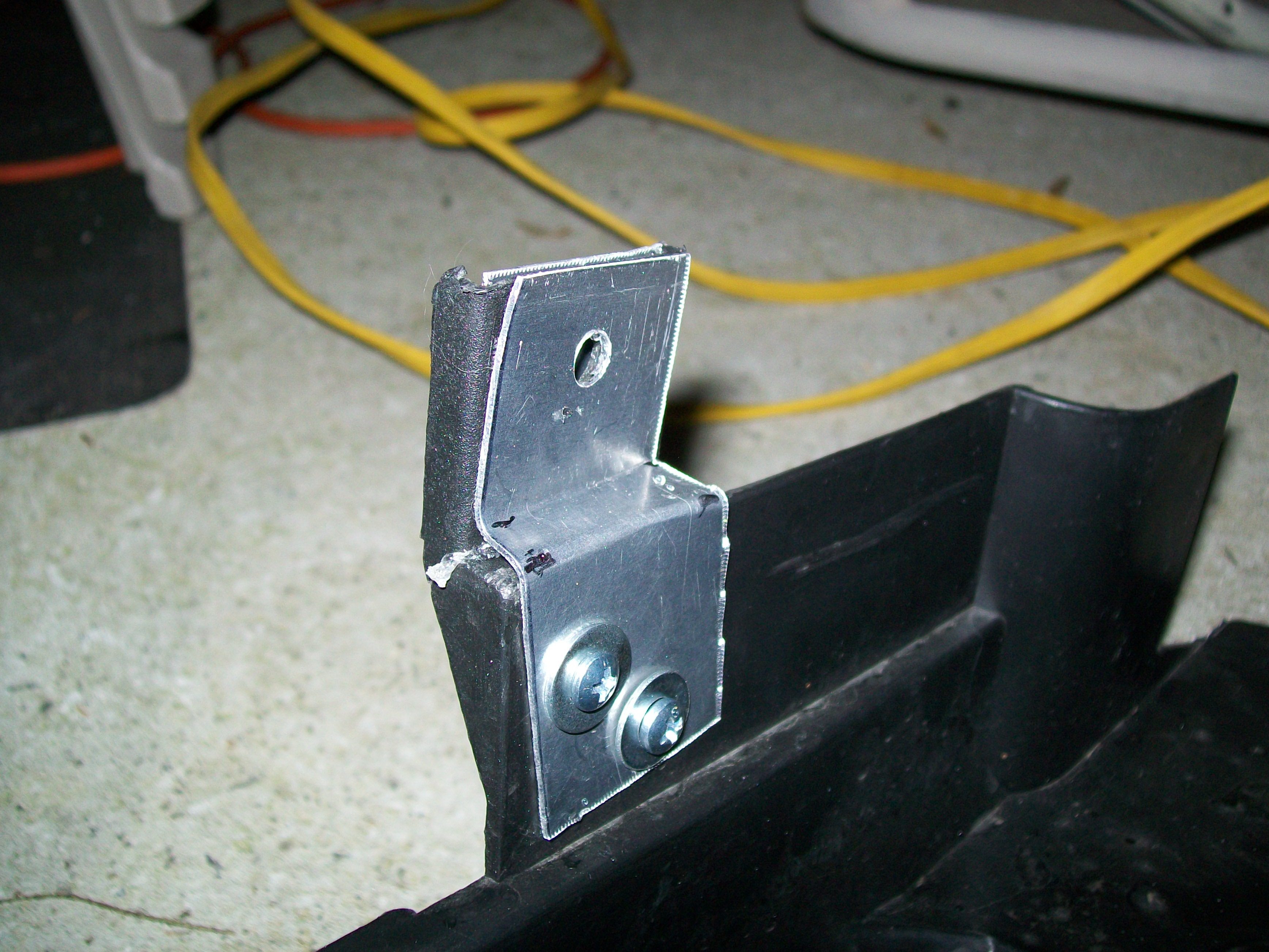 If your air guide brakes off from running over debris or parking curbs, etc., you can fix it easily and inexpensively with this method. You may have the materials on hand already or you can pick up a 6X18 piece of sheet metal and the other hardware at Home Depot or most any other hardware store for less than $10. You will also need some "tin snips" and a clamp or two to hold the reinforcing sheet metal in place while you drill the holes in it.