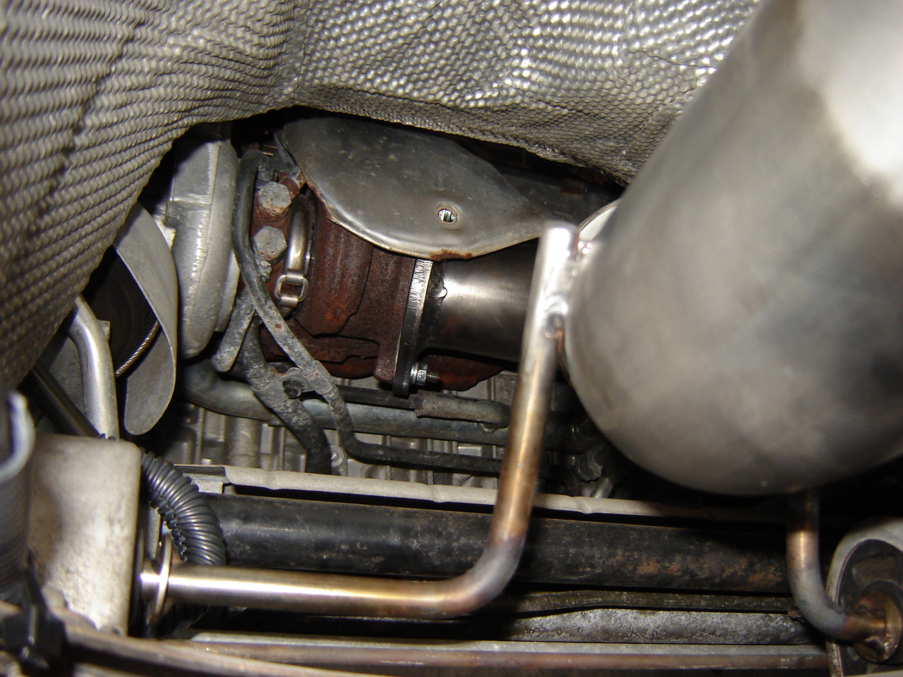 I have attach pictures of how you can fit a S60R downpipe on a 2001-?? FWD S60 2.4T or T5, mostly the mods have to do with the brackets under the exhaust as AWD exhaust hangs lower then FWD exhaust. Also the earlier S60's have a different mounting for the downpipe hangers, you just have to heat up the mounting hangers on the downpipe so you can bend them to fit the earlier mounting. These pictures are from a 2001 S60 2.4T.