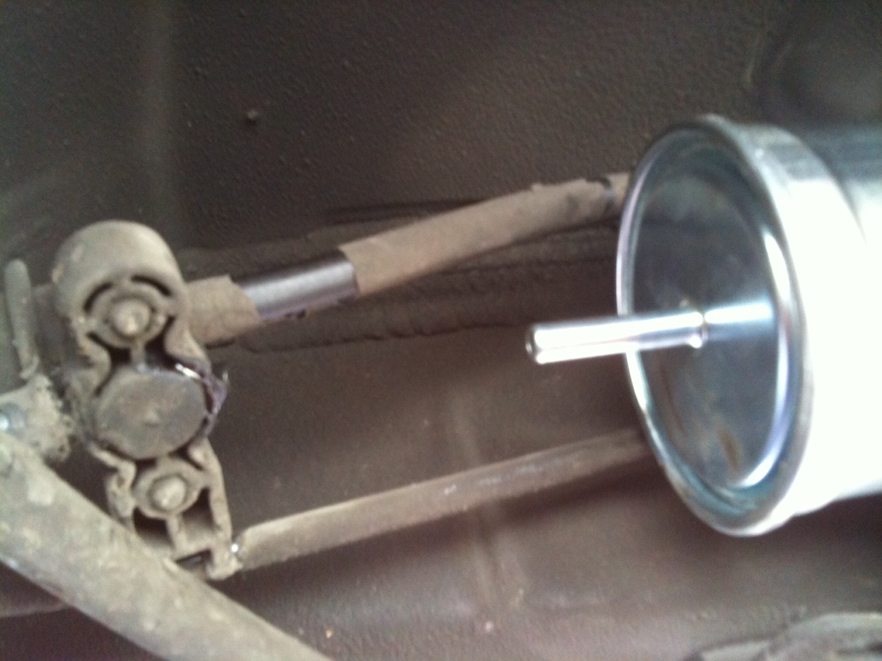 This is it with the pressure pipe connected to the end of the fuel filter.