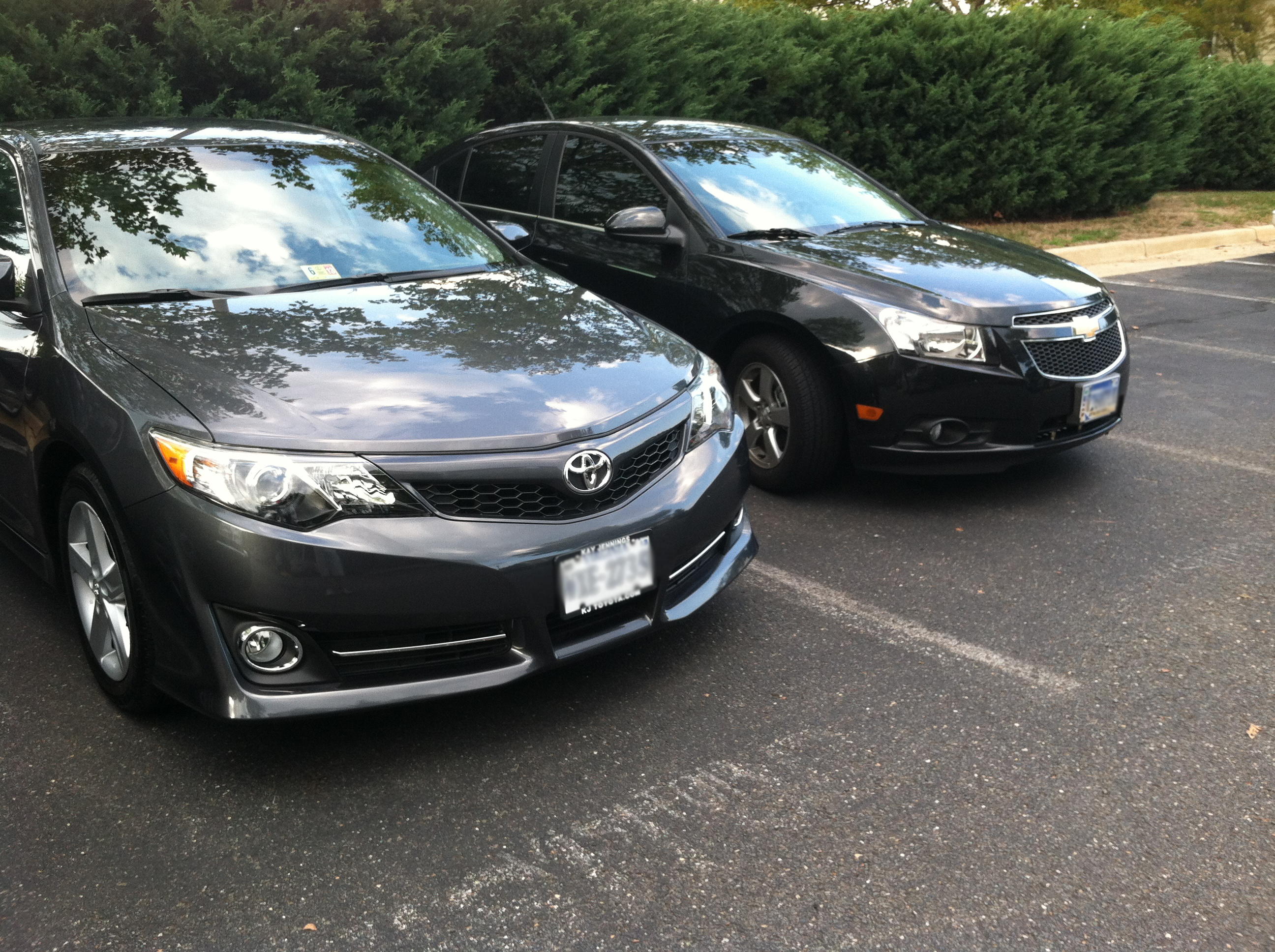 She replaced her 2002 Camry LE V6, which will be passed down to her younger brother who just totaled his Accord, with a 2012 Camry SE 4-cylinder.