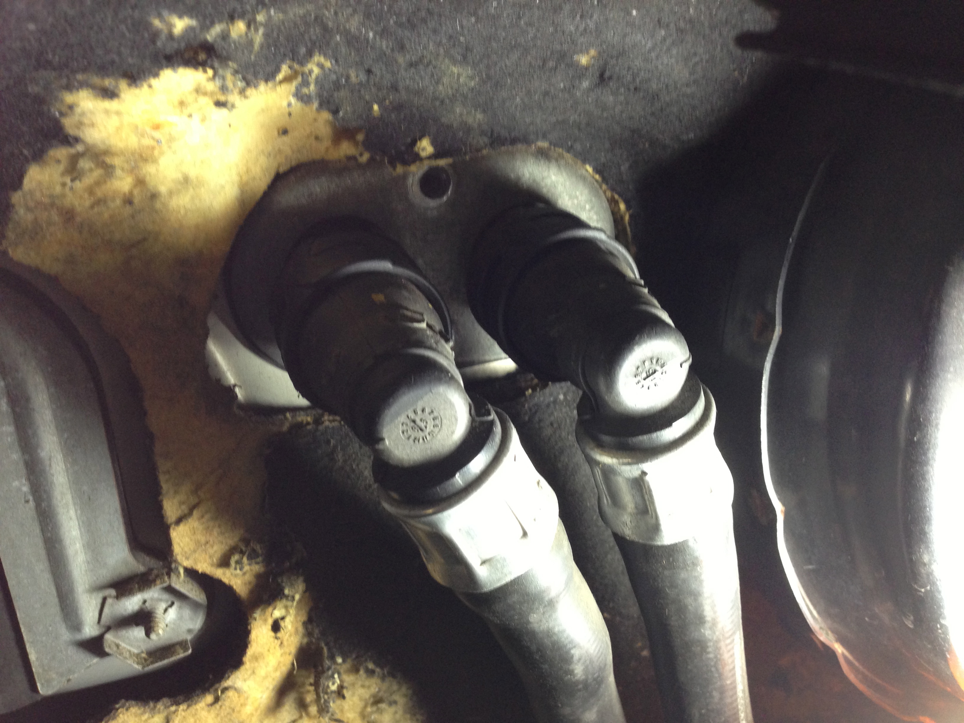 They are twist lock type.carboncow wrote:1. How the hell do you get these bizarre proprietary clips off the heater hose at the firewall junction? I appears from several write-ups they have to come off so the interior pipes can move around...is this correct? and if so how the f%^$%$ do you get them off?