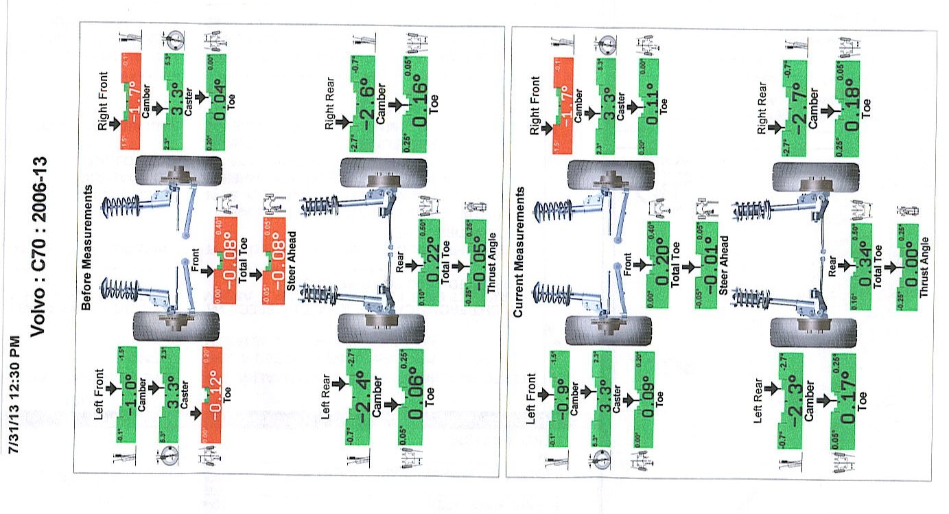 2011 volvo c70cv bent strut and wheel alignment