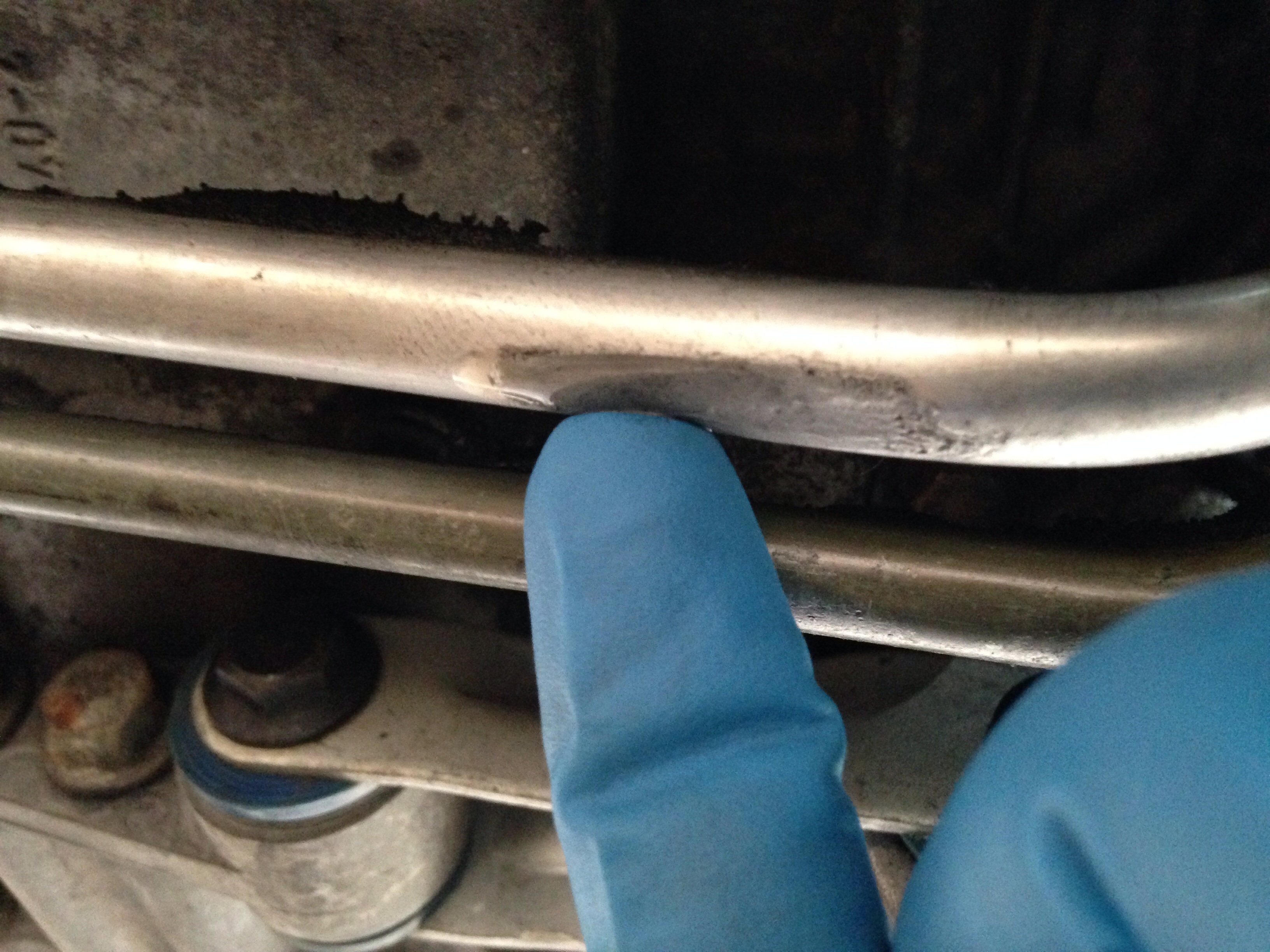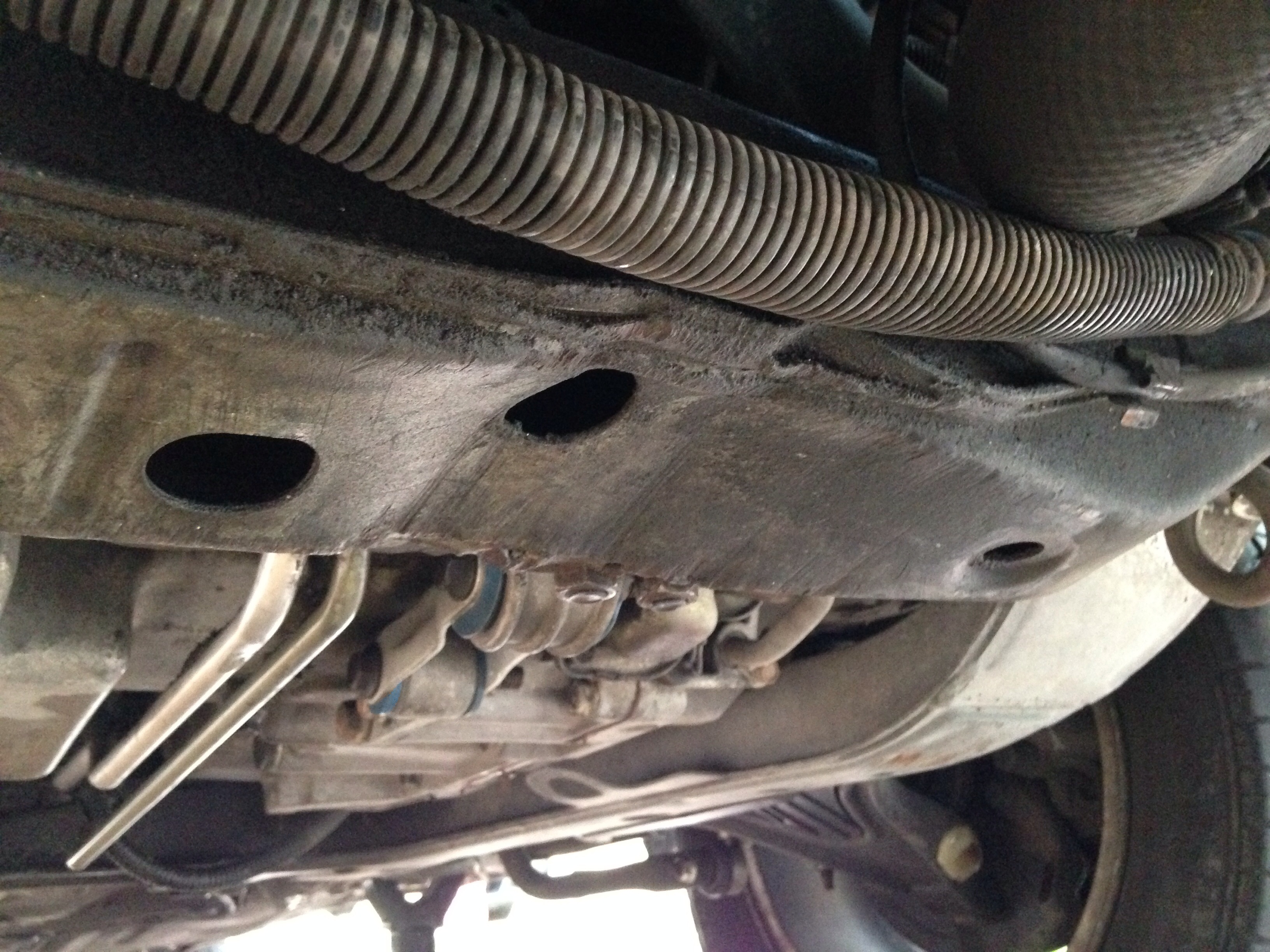 Noticed P/S fluid dripping on the bottom of the car. Found the culprit. I admit my front struts are SHOT and when I'm on NYC uneven roads my vehicle bottoms out which sends a Big Bang thru my dash and front. Is there anything I can purchase to protect my P/S lines at the bottom ?