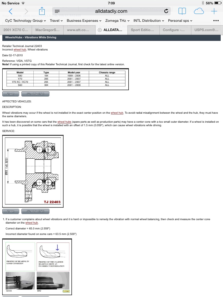From 2010 Volvo publication 22403 outlines a potential problem with wheel hub diameter manufacturing defects. If you are having excessive wheel vibration on a 2001-2007 P2 car, this might be worth exploring.