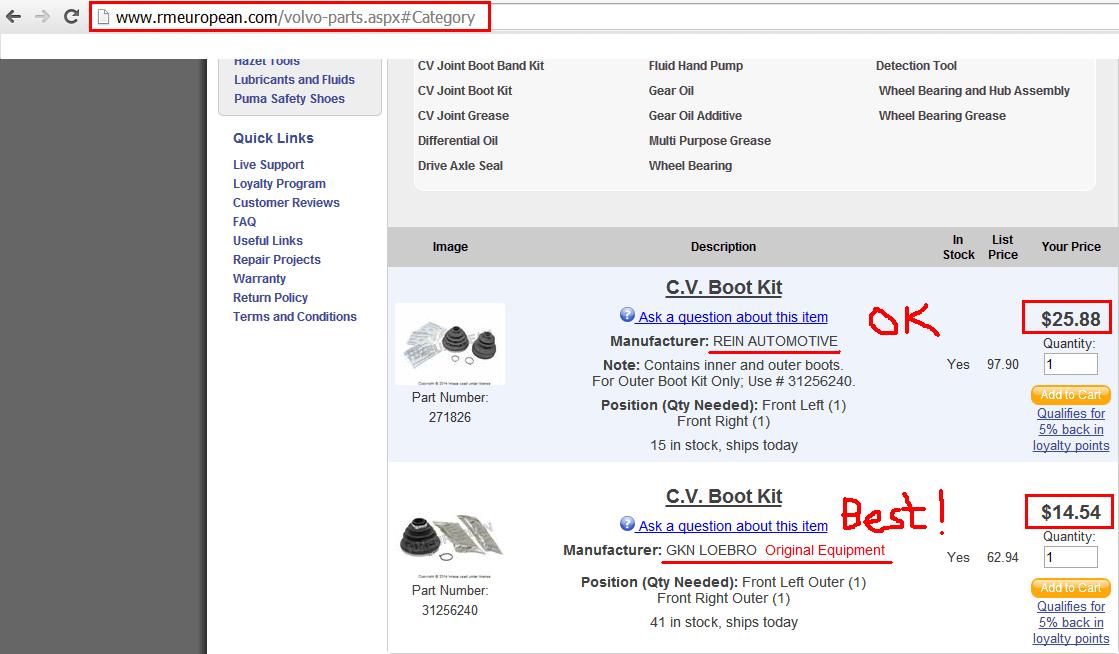 OP needs the CV joint, not the boot. He is in Sweden, Cam didn't you have a link to a European supplier?