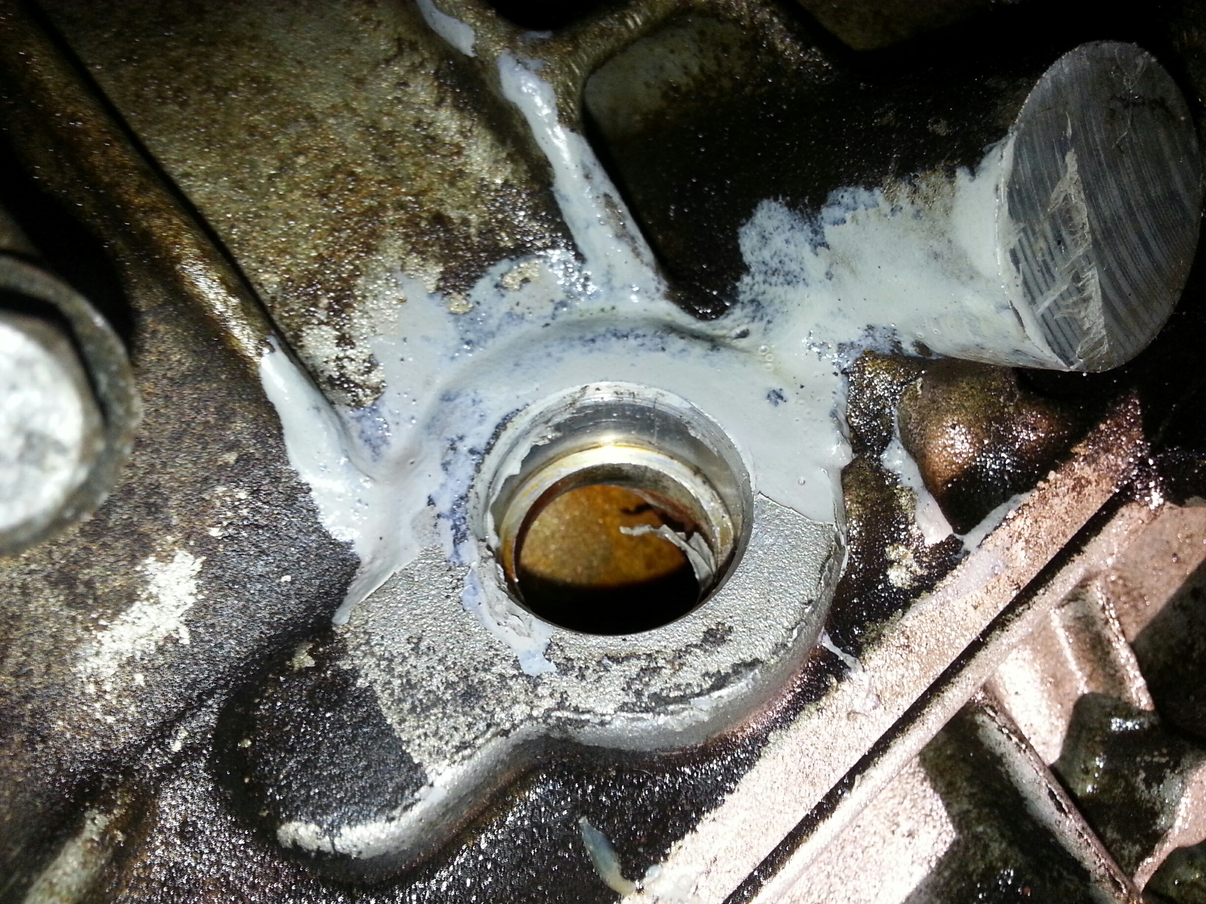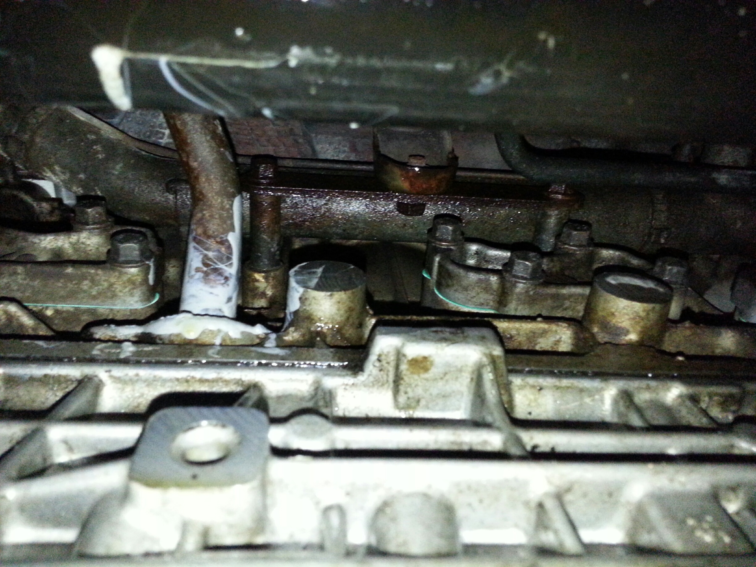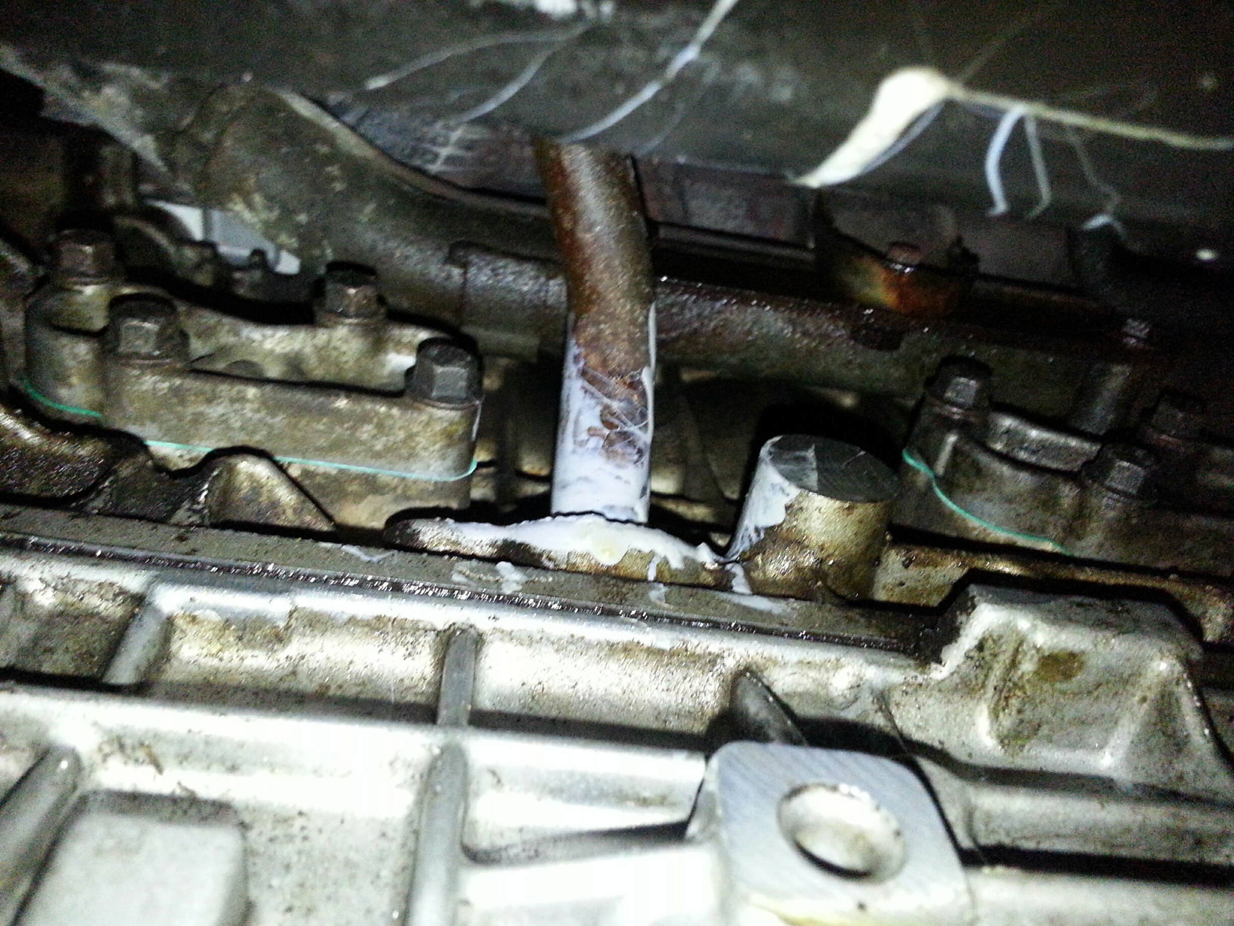 I also pulled the cam sensor cover just to check, it was dry inside and the seal appeared to still be seated. There also may be a small trans leak, i saw a drop of red fluid on the bottom of the casing, but ill worry about that later. I need a somewhat warmer day to get the car up on ramps and pressure wash off the undercarriage, there was oil all over the catyalitic converter, and the muffler. There sounds like there is a small exhaust leak around the cat too, luckily i see there is a replacement one from turbo back from magnaflow for like $450, so thats good news. Anyone ever used that one? I guess the next step will be running this through inspection and putting some miles on it before dumping any more money in to it.
