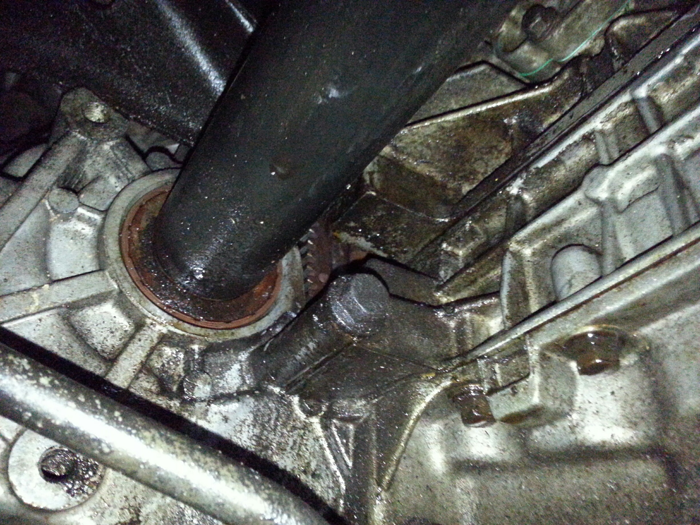 Maybe it is the rear camshaft seal? I will pull it apart and look at it, i dont think its the rear main only because the flexplate is dry and the oil isnt coming out of the weep hole. Its around the hold but not coming from it. it looks much worse since i sprayed the turbo line down with kano for later removal, I will look to wash all of this down once i get done with the work this weekend. When i took the engine apart the rear cam seal was unseated, so it's been a pretty heavy leak as long as whoever owned it before drove the car, i would think the cam seal popping out hopefully protected the rear main.