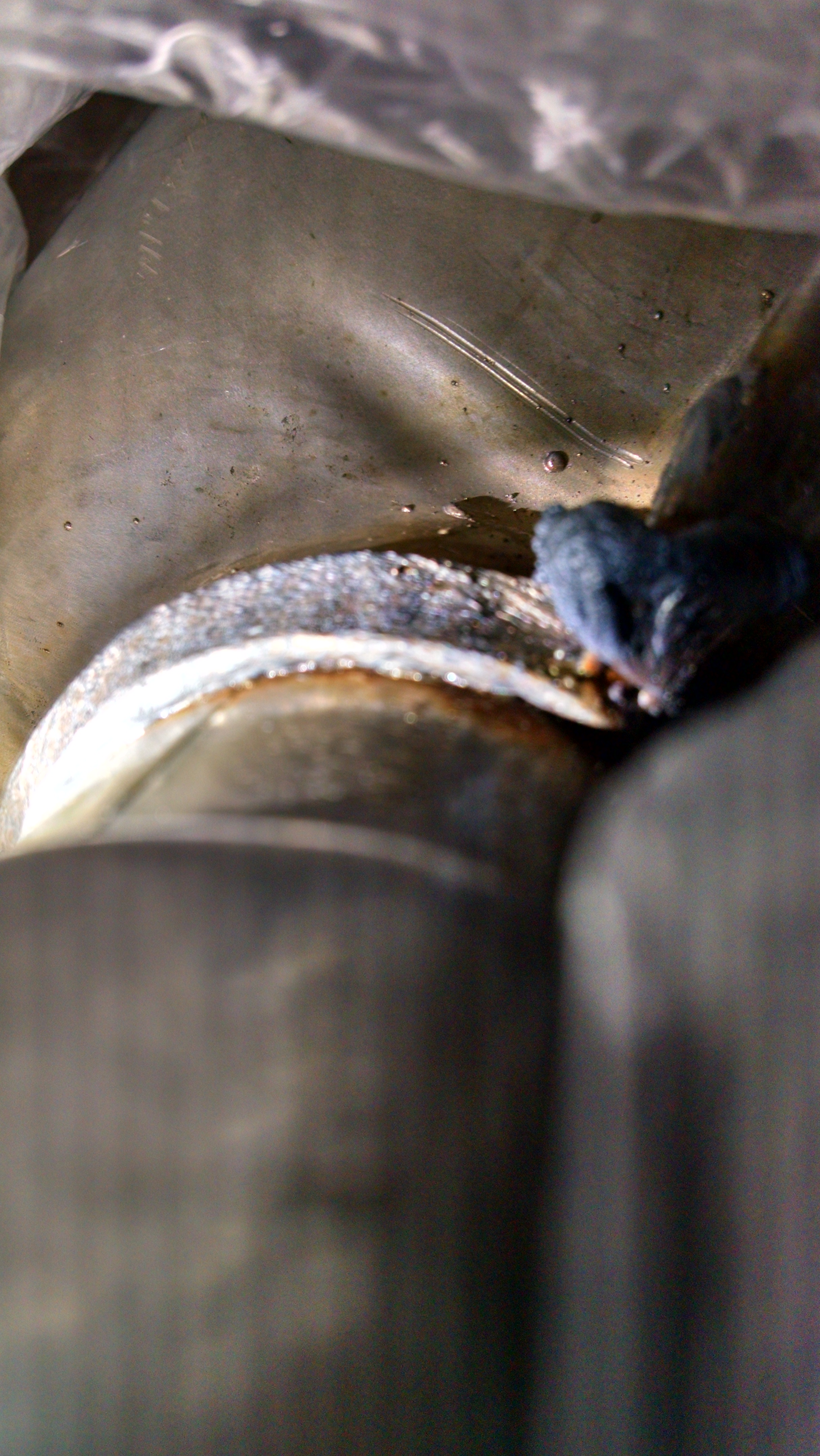 An fcp rep told me today that fcp's genuine Volvo parts specialist spoke with someone at Volvo who said that the visible part of the welds is actually an additional layer which is laid over the regular weld bead to protect it from rust and this is the way they do these now. My first thought was that this is an excuse fabricated to explain away a really messed up weld from some crappy factory. when I thought about it some more the explanation made some sense to me.if this was the actual weld bead why would someone bother to go to the trouble of following the weld along as they went with a tool that pressed it down and rolled the weld ? why not just leave the bead as is in its good structural integrity ? why complicate the process unnecessarily and how would it even be possible without an extra set of hands to mold the bead before it hardened ? Maybe this is what jds60r was referring to as "automated mig" .the visible part does actually look like it was just laid on top and has not penetrated and mixed with the pipes metal.the magnaflow muffler in jds60r's photo looks similar but it is hard to tell because the picture is out of focus.jds60r : does it actually look the same I can't really tell from your picture and can you please explain how automated mig works and what you meant by spray?
