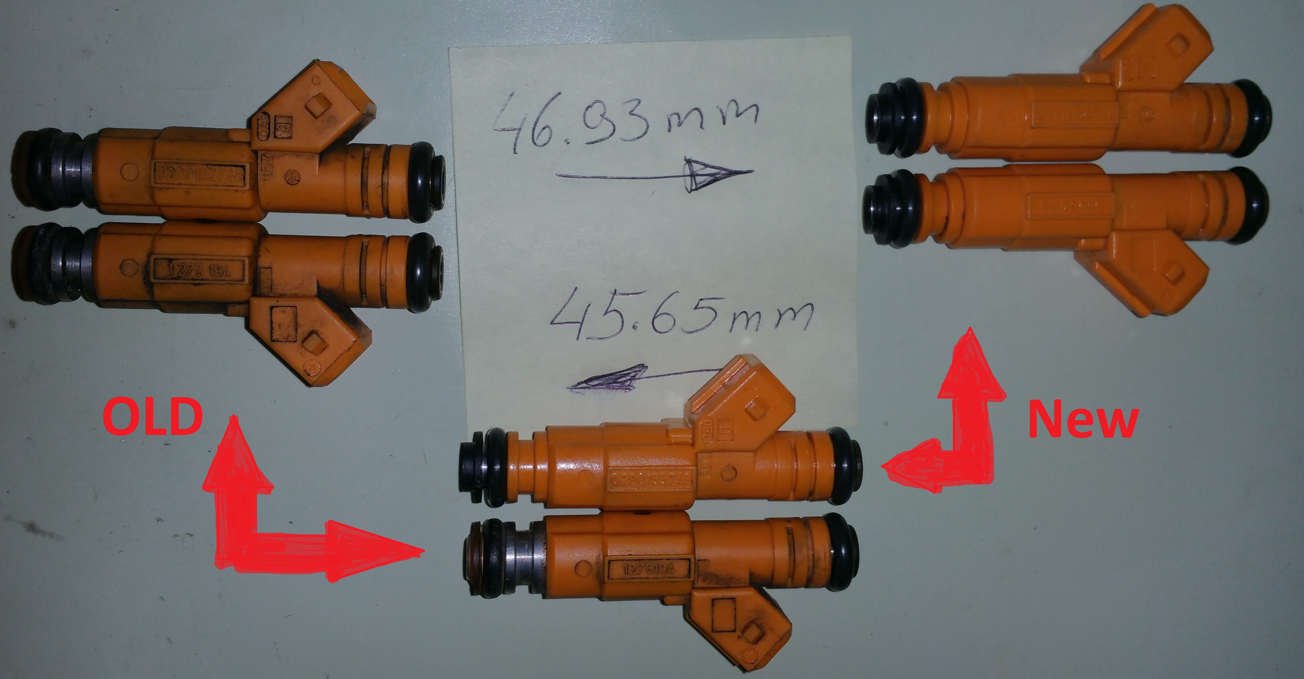 They fit perfectly fine into fuel rail and into manifold. However, I'm getting a sense that I should be smarter to just return them...Thank you for the help.erikv11 wrote:What matters is that the o-ring seals well and the position of the nozzle in the chamber, i.e. that the o-ring to nozzle distance is approximately the same. Total length is of no consequence as long as the injector and rail will fit in the engine bay (and a few mm is not an issue). Should be fine.