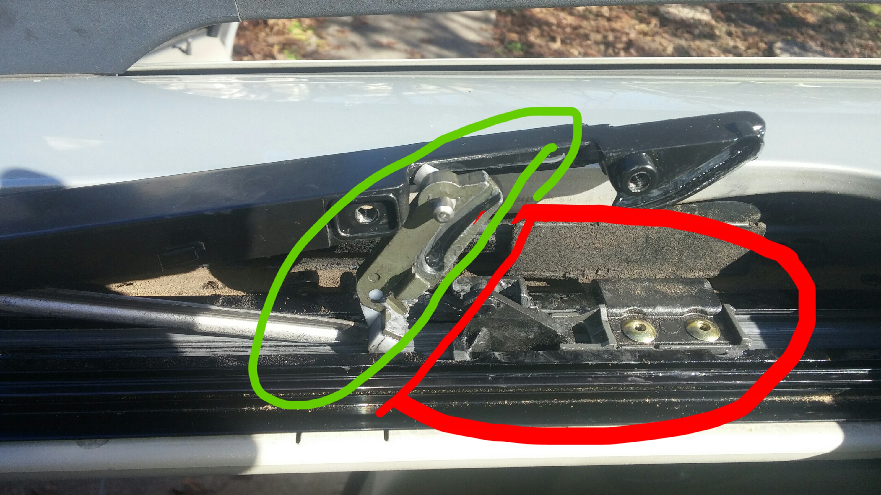 Some pictures to show what I am talkin about. When the red/green circled items are attached it only produces the window to retract half way. When they are unattached I can move it as far back as it goes with the window switch. Also... Using the window switch, the sliding mechanism doesnt come to a locked position (as in where the window would be in a "closed" setting. It just goes up and immediately retracts as if it cannot find the "closed position".