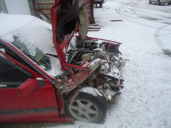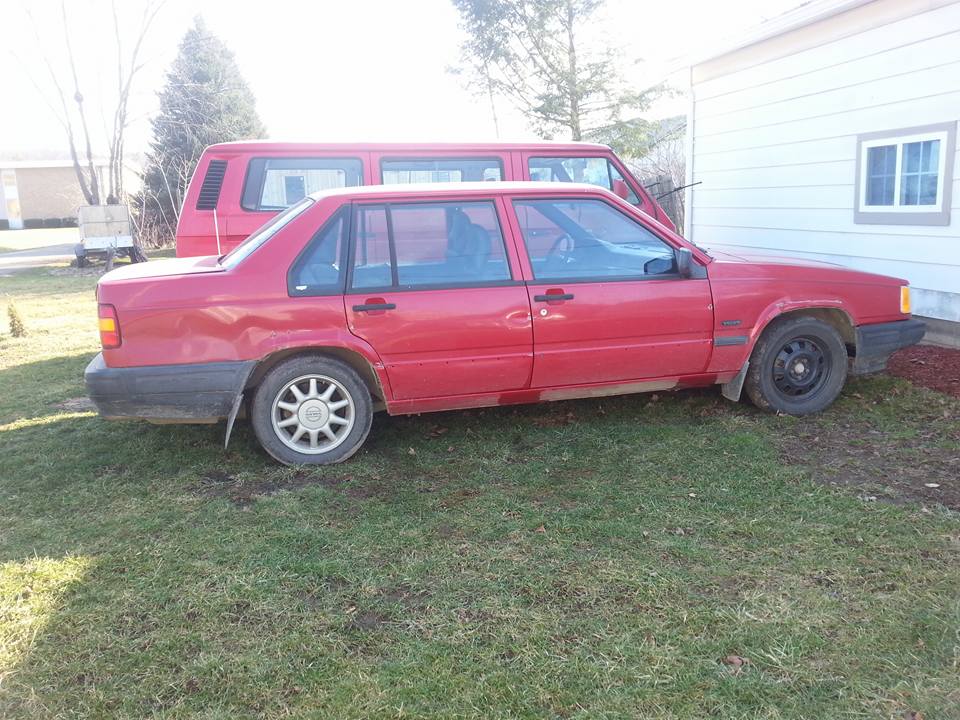 Anyhow, I recently bought a '95 940 with about 148k for $500. It mostly needs tires and a windshield (already replaced). Here's her bad side where the previous owner side swiped a guard (guide?) rail when it was snowing. Hopefully I can find the little trim pieces for her to make it look a bit better.
