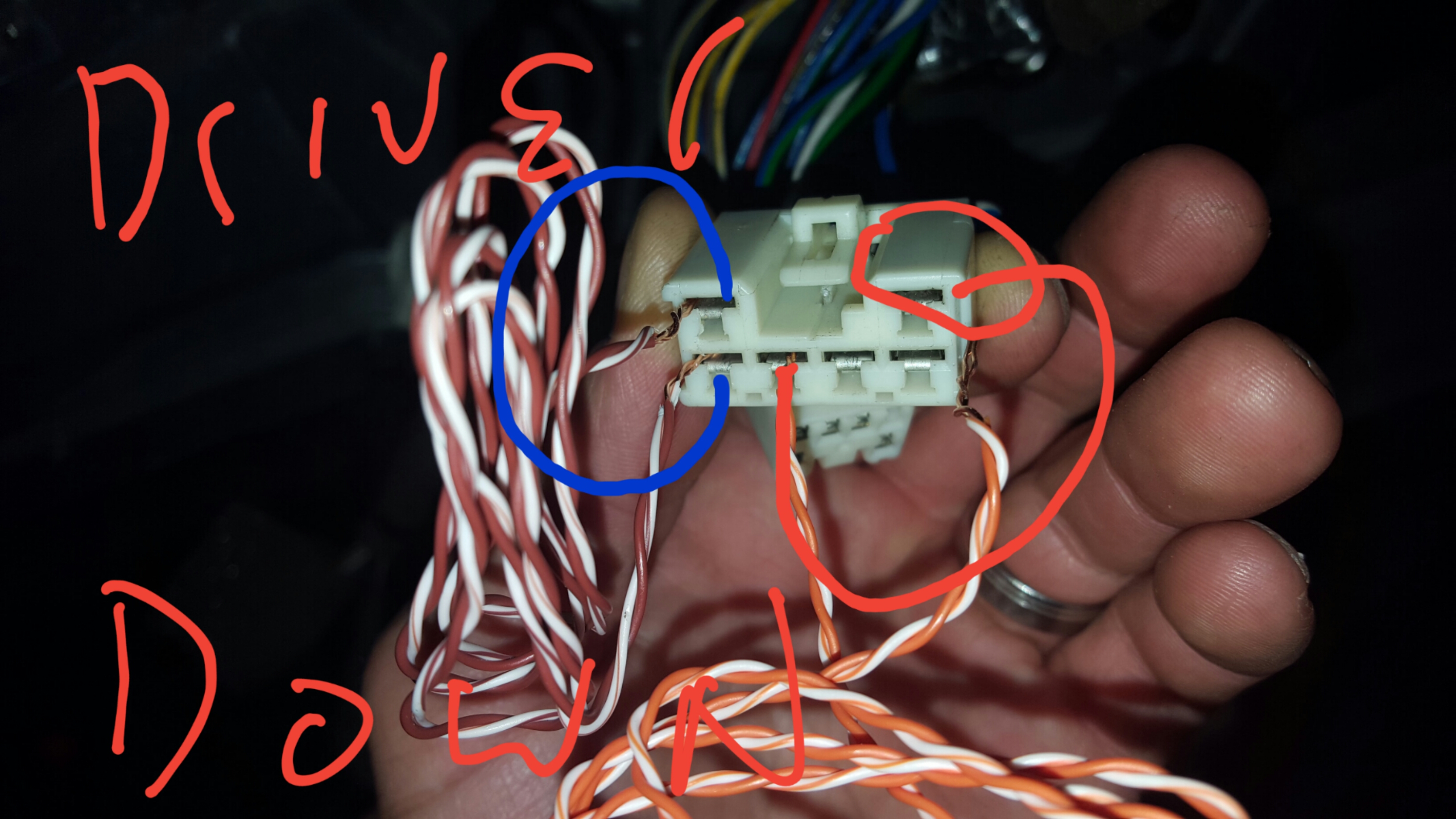 So mine died too, sunroof too. Swapped fuse 37 for 39. No help. Unplugged master switch and sunroof worked. Tried cleaning, it worked to lower driver window 3" then died again. I pulled the plug off and figured black is ground, blue is power. Jumper in green to black and put jumper in green blue and touched blue for up. Also Green blue to black and green touched to blue for down.