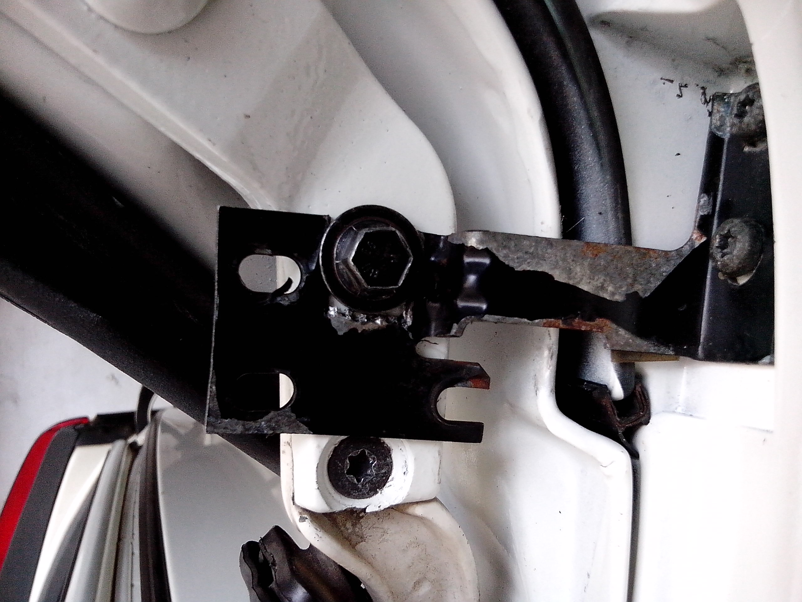I just cut a little u shape opening in order to bolt it with one of the existing tailgate securing bolts.In this case you will need to use a bit longer bolt with the same thread.The other type of mountings(single-type) use similiar method.