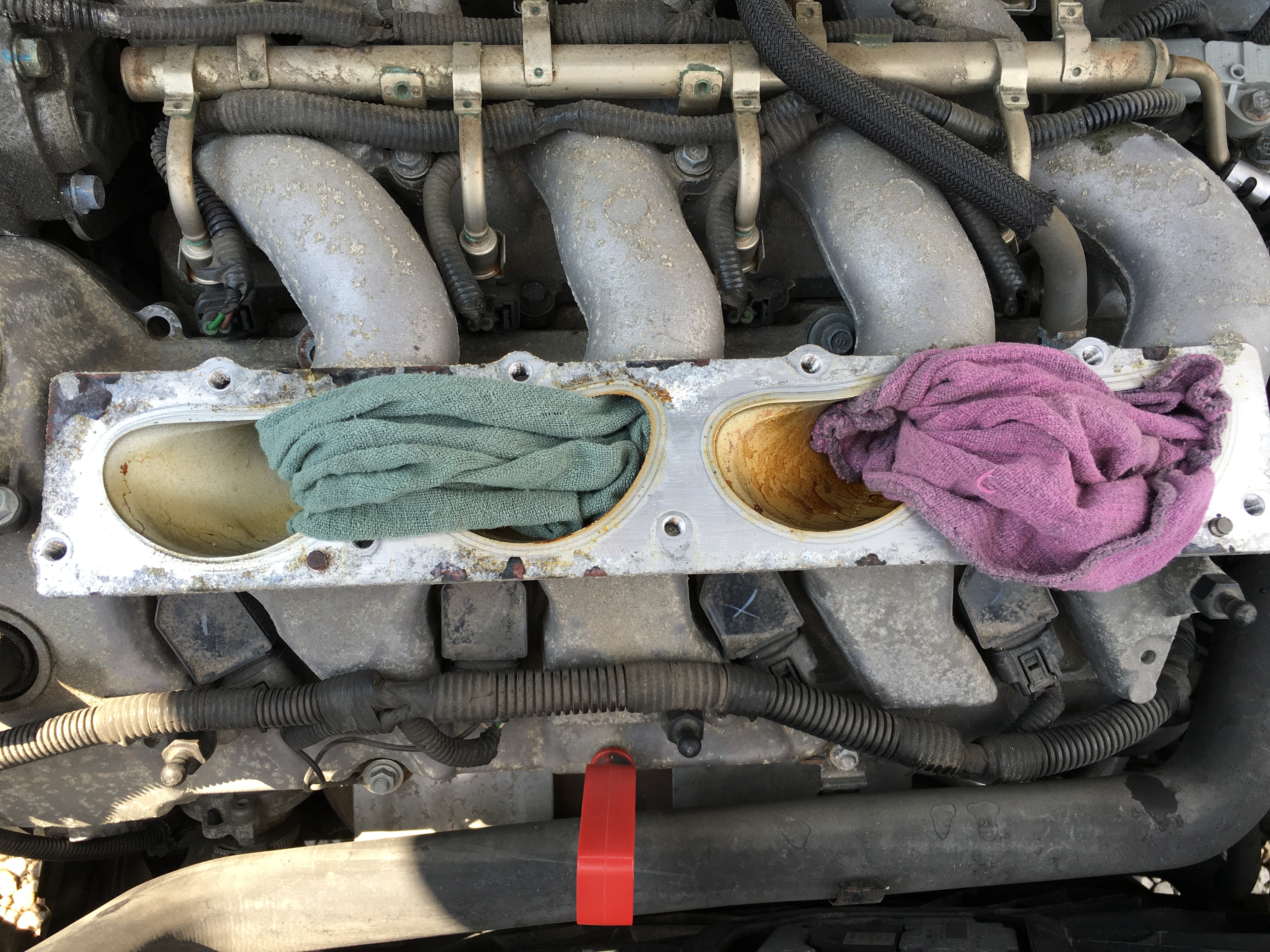 Cleaned the upper intake-just where the gaskets sit. Replaced the short pvc hose and upper intake gaskets.