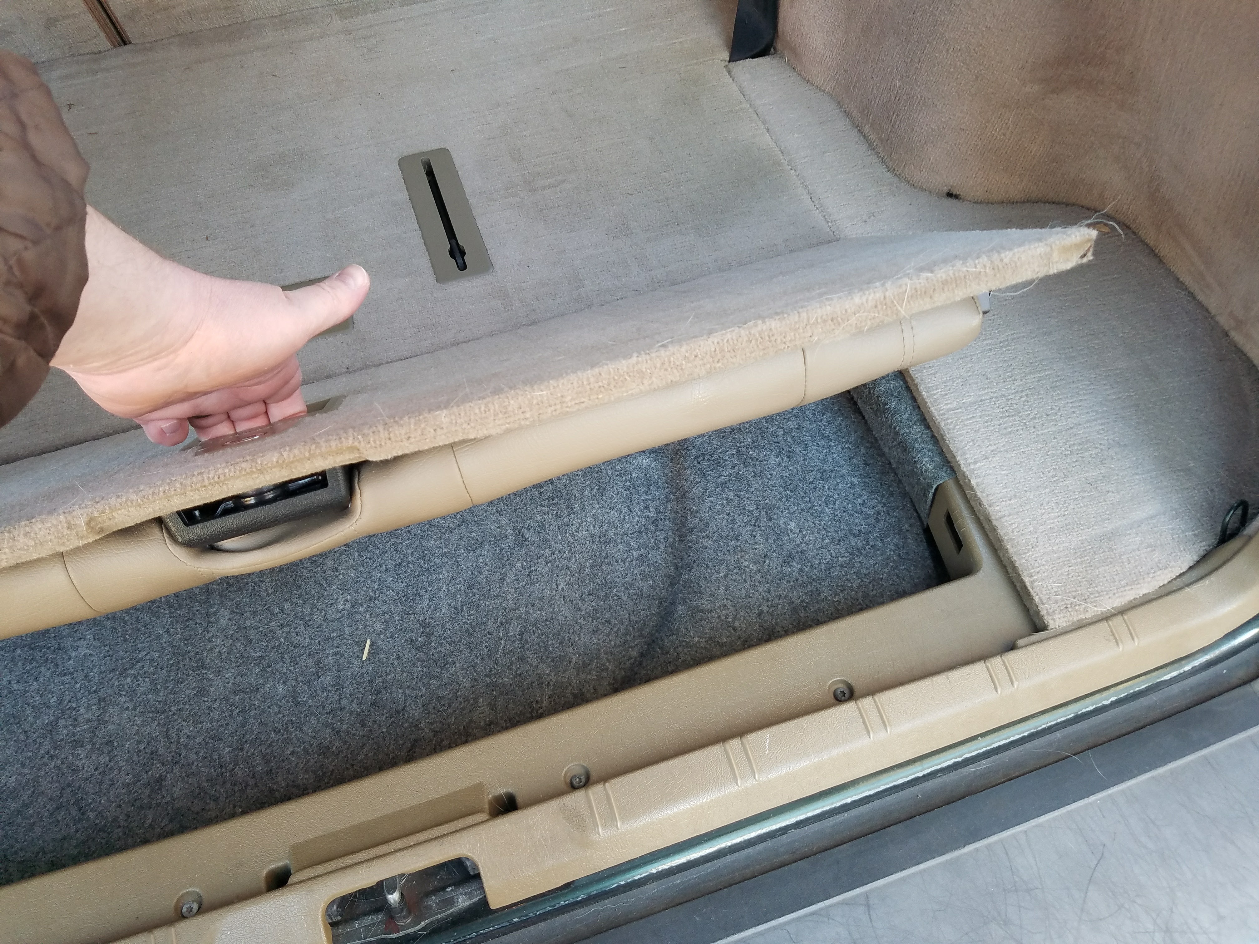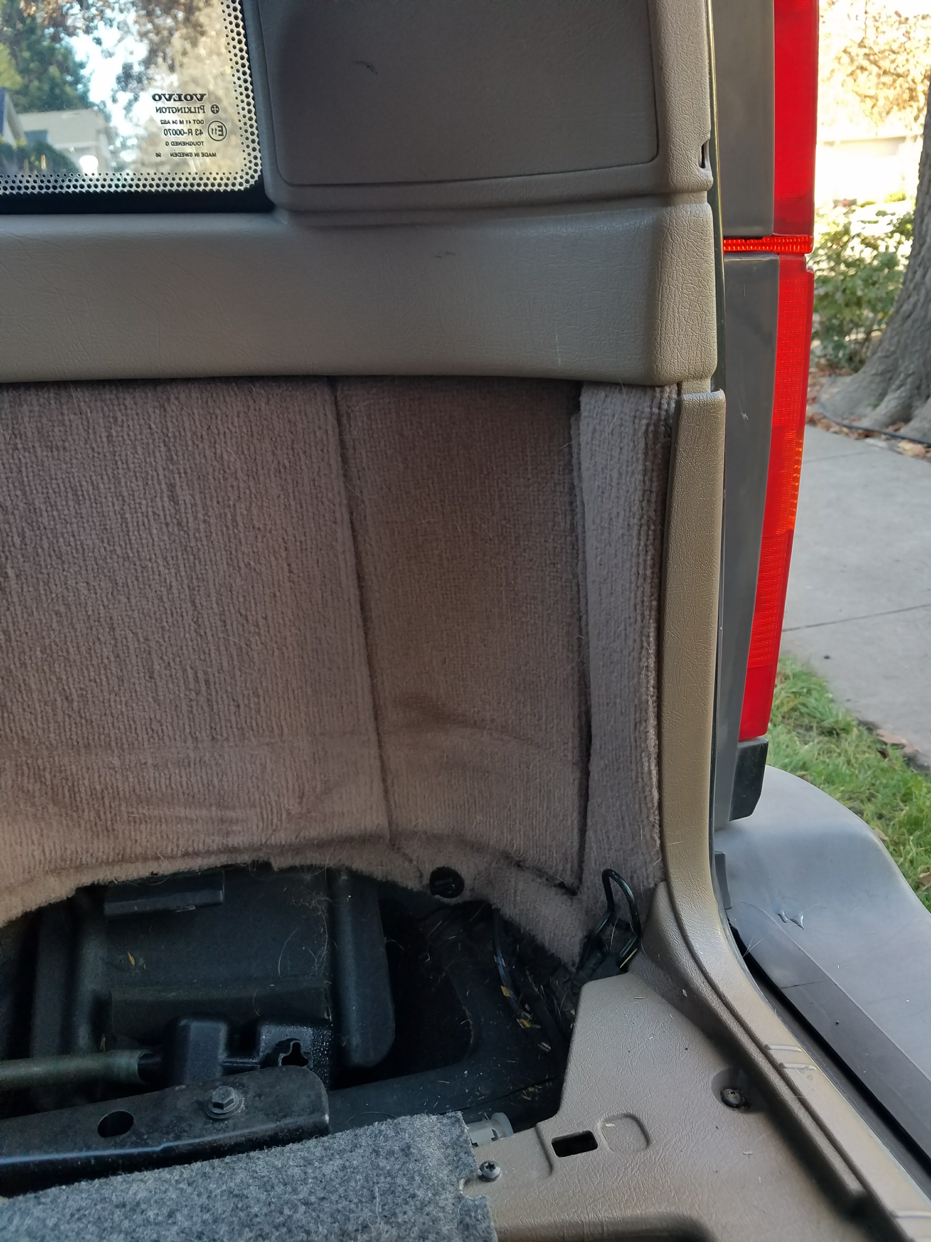 My wife took the wagon to pick up some supplies a couple hours away this weekend. While she was about to fill up for the return home, she found the fuel door lock would not disengage, even after multiple locks and unlocks through the dash button. She called me and I talked her through the manual release, and she was able to fill and make it home. As she rolled it into the driveway, she locked it out of habit. I know Robert has a few videos of the manual releases for various 850's, but I've haven't seen a wagon documented, so I used the opportunity to snap a few pics and share them here...