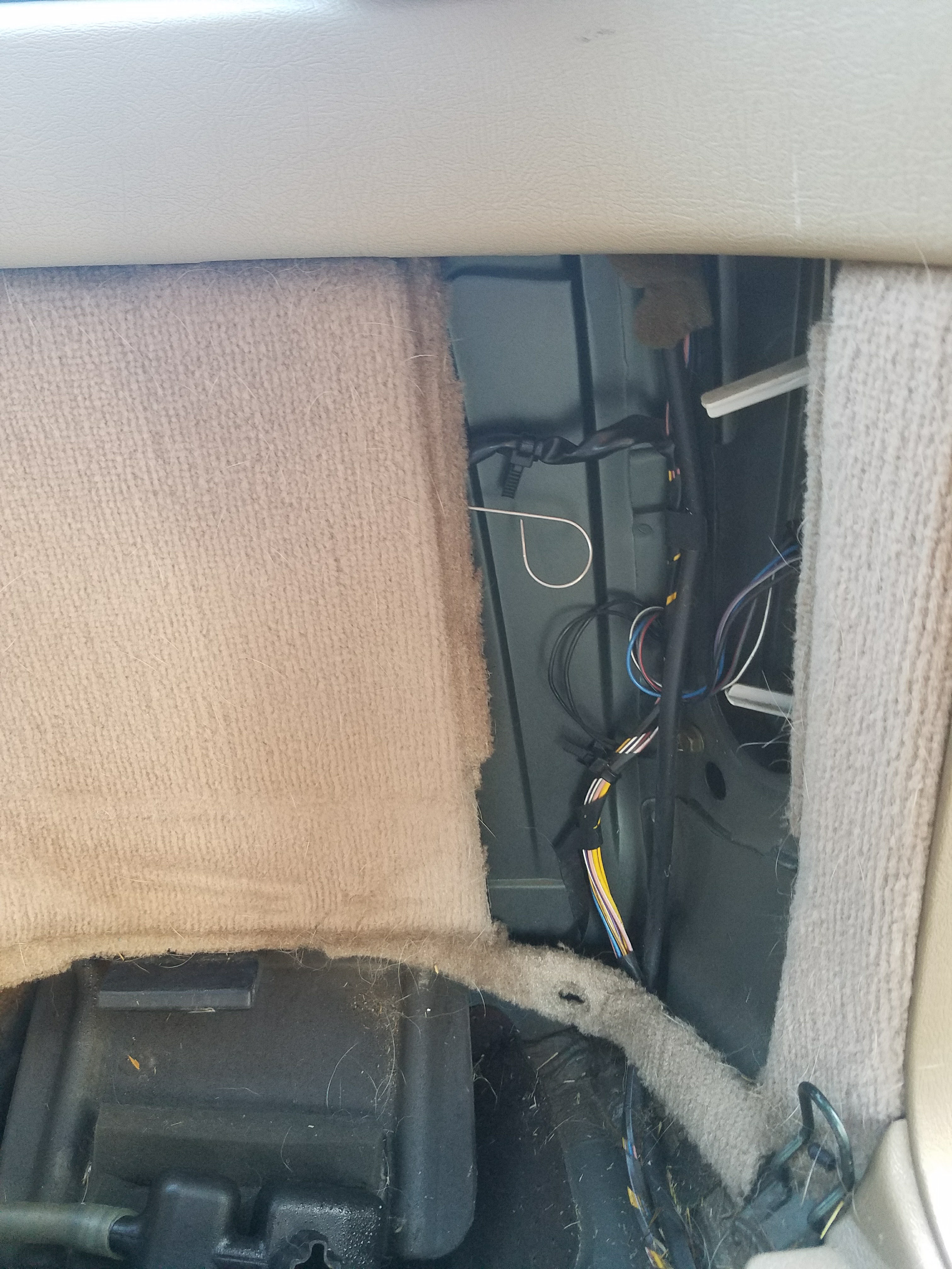For access, removal of the front floor panel, folding-up of the cargo jump seat back,and removal of right-side floor panel will get you to the point you can pull the corner access panel. The right side floor panel is held by 2 friction clips- pulling up where my hand is positioned in the 3rd photo will release both: