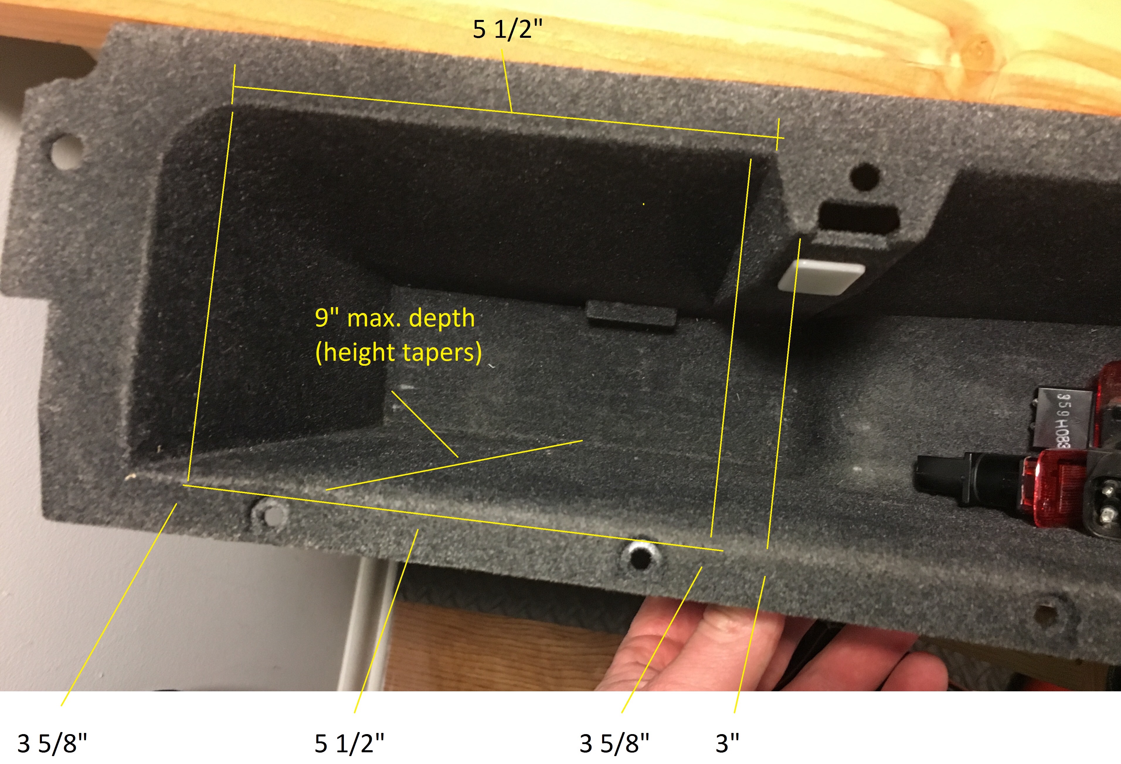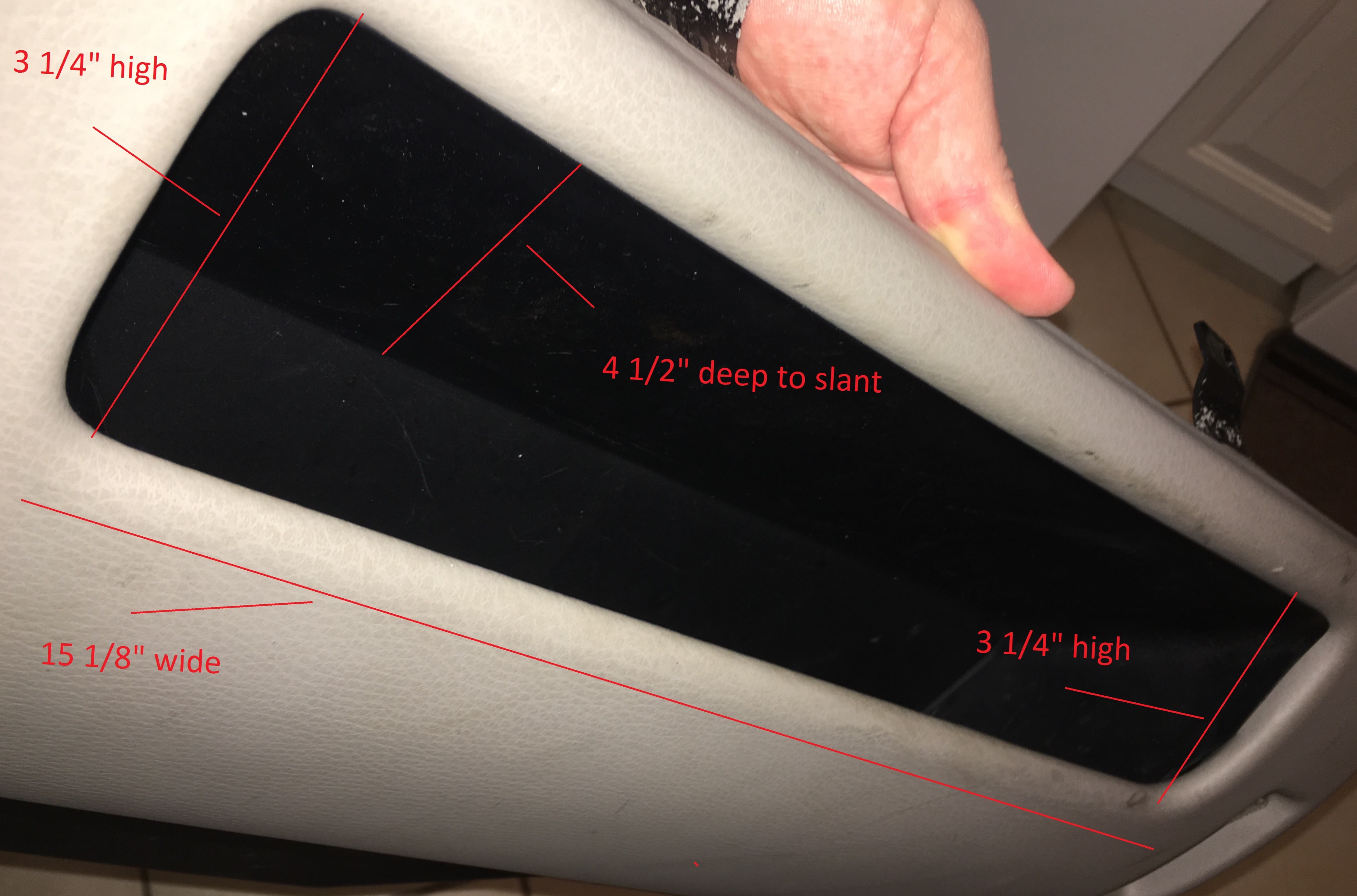 I've been trying to figure out a way to put a CB radio in a P80 chassis Volvo over the last few months. I got my hands on a map holder trim piece and a spare glove box insert and I took some measurements.