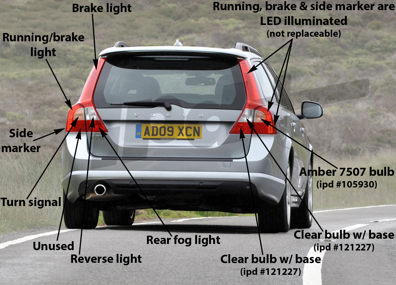 Handy 2008-2016 V70, XC70 tail and brake light bulb guide from iPD