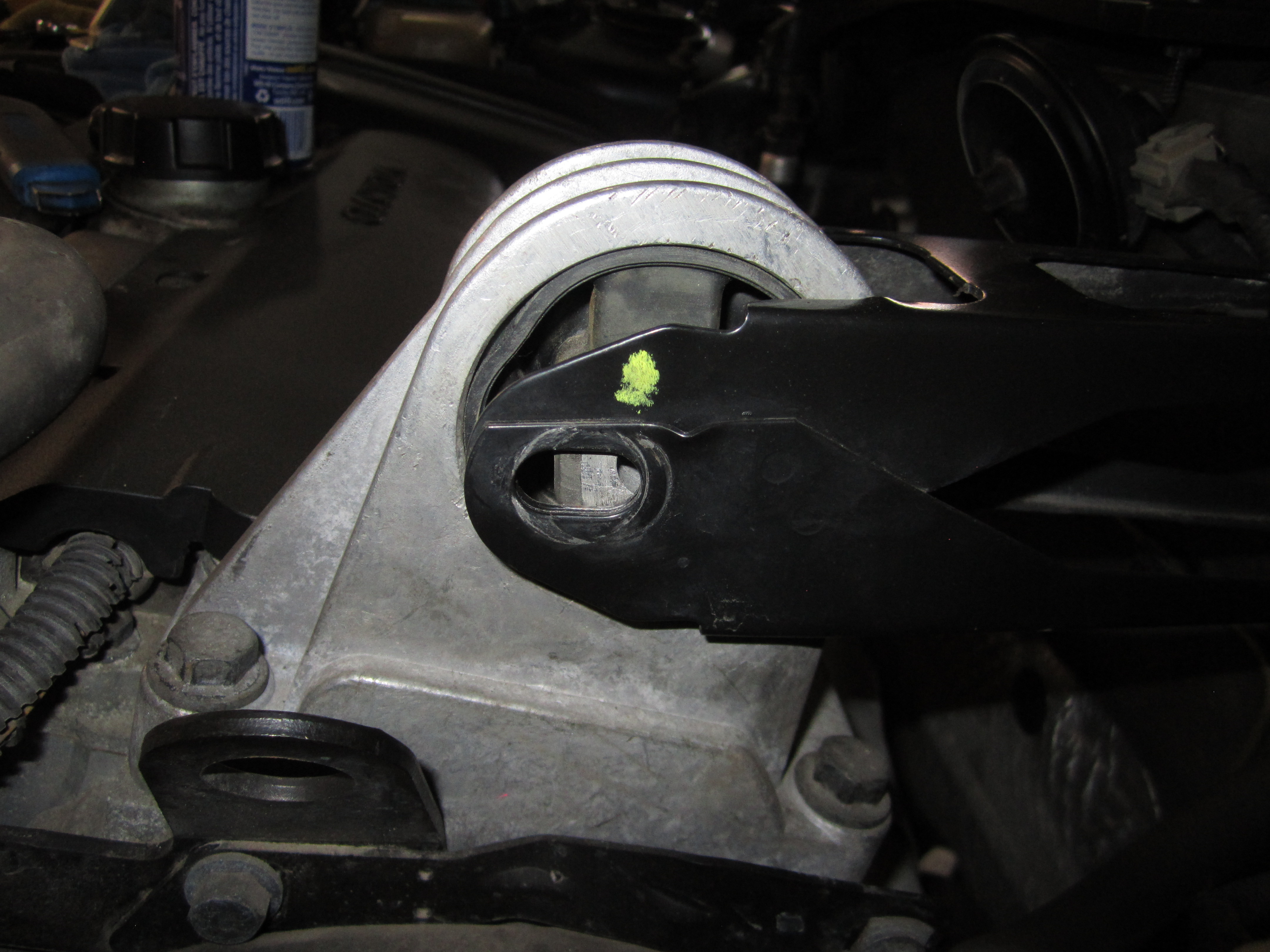 So better but still not enough to get the bolt in without raising the rear of the trans/engine. I still have to replace the lower torque mount and the broken crank mount but can't see how these will fix the issue as the lower torque mount will do nothing to help and the crank pulley mount may rotate the engine slightly or tilt is slightly to the left, but it won't rotate the engine to align the top mount hole.