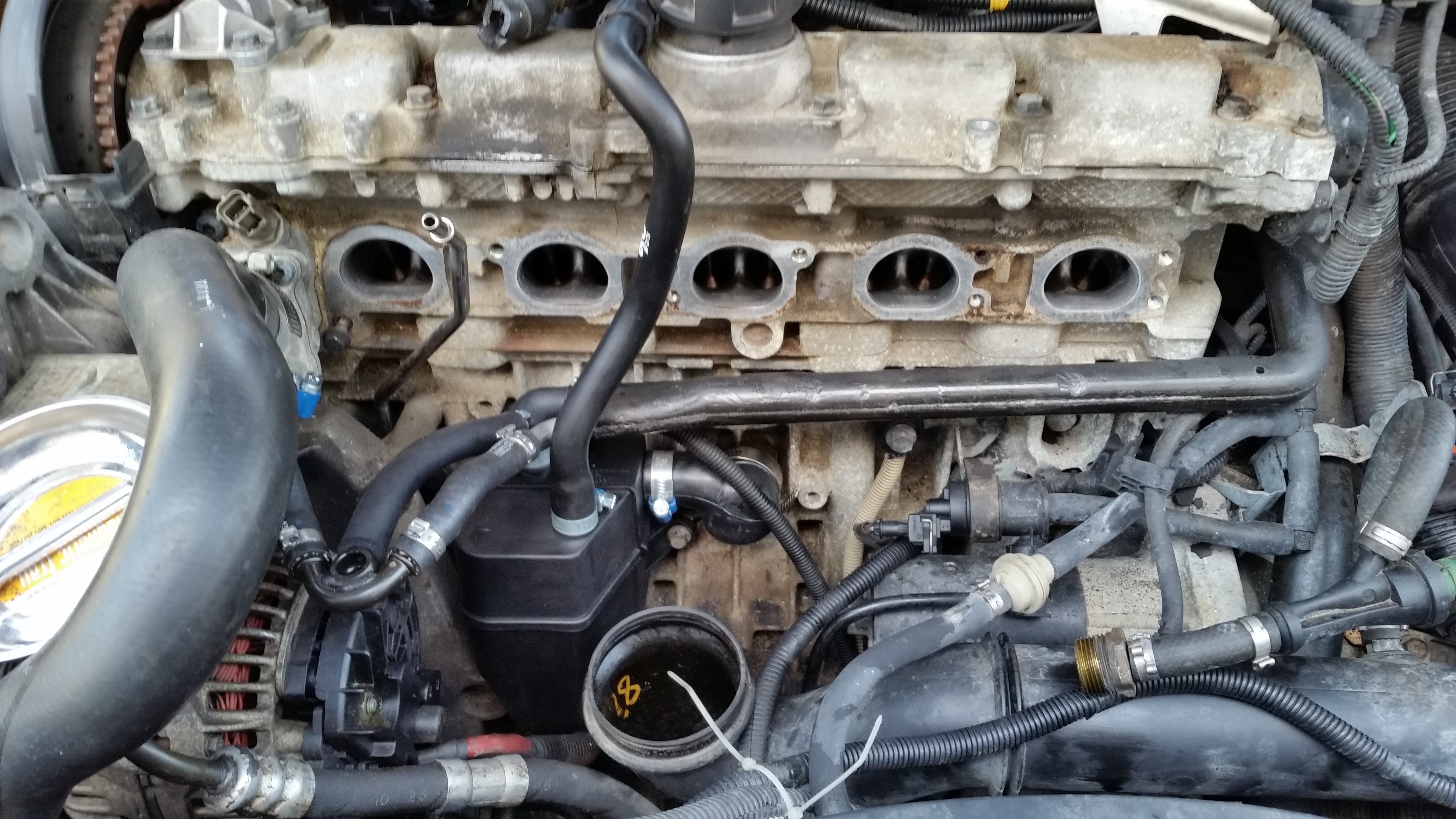 Car was driven with "low oil pressure" light on. PCV and oil system were very sludged. PCV components all replaced. Oil pan and oil intake pulled and cleaned. Fresh oil and filter. After that it sounds like a diesel, white exhaust clouds, has lost some power, but drives and works. Could be head gasket or turbo?