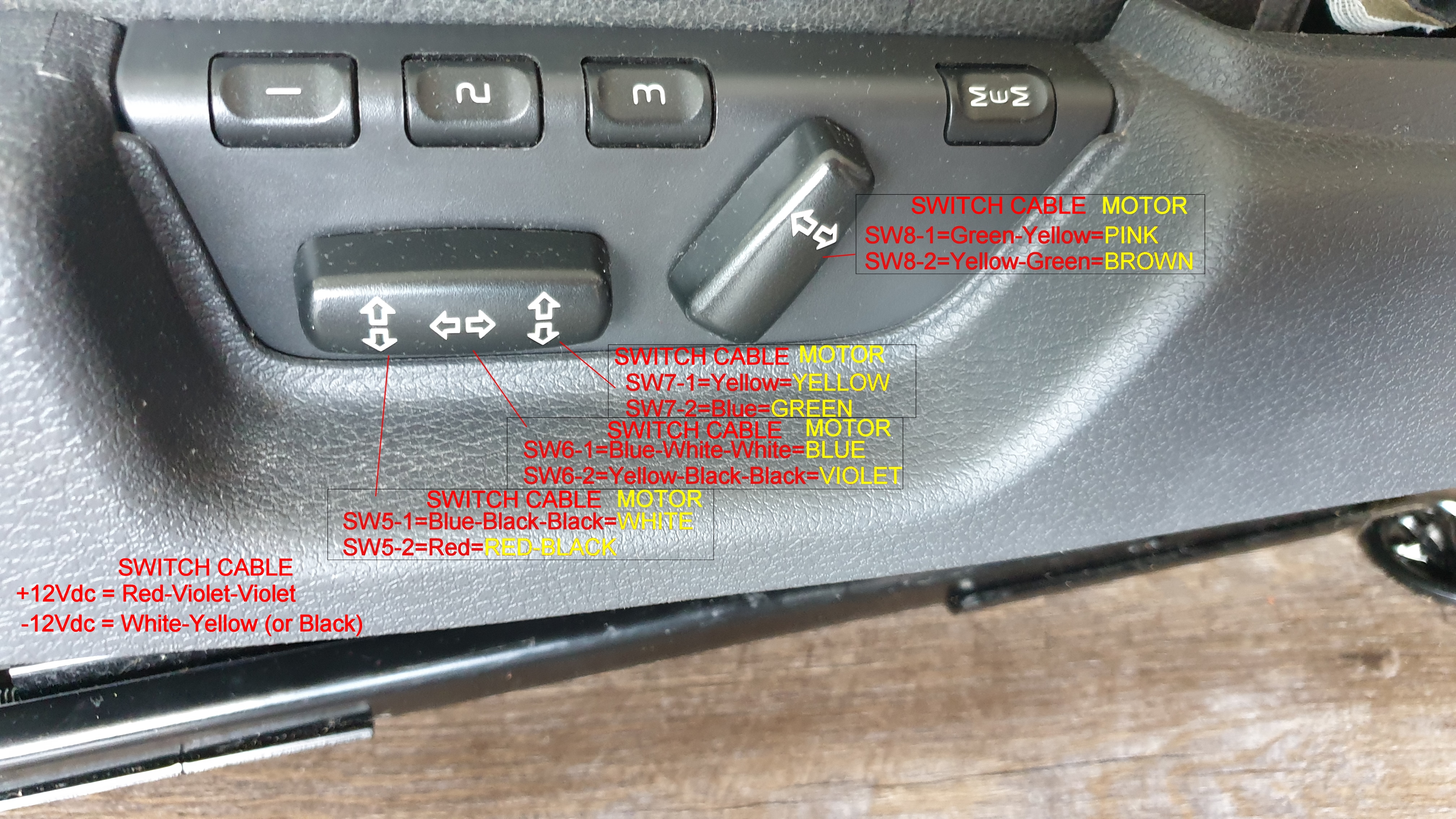 Now you'll have the complete wiring setup for the seat switches and know which wire controls what.