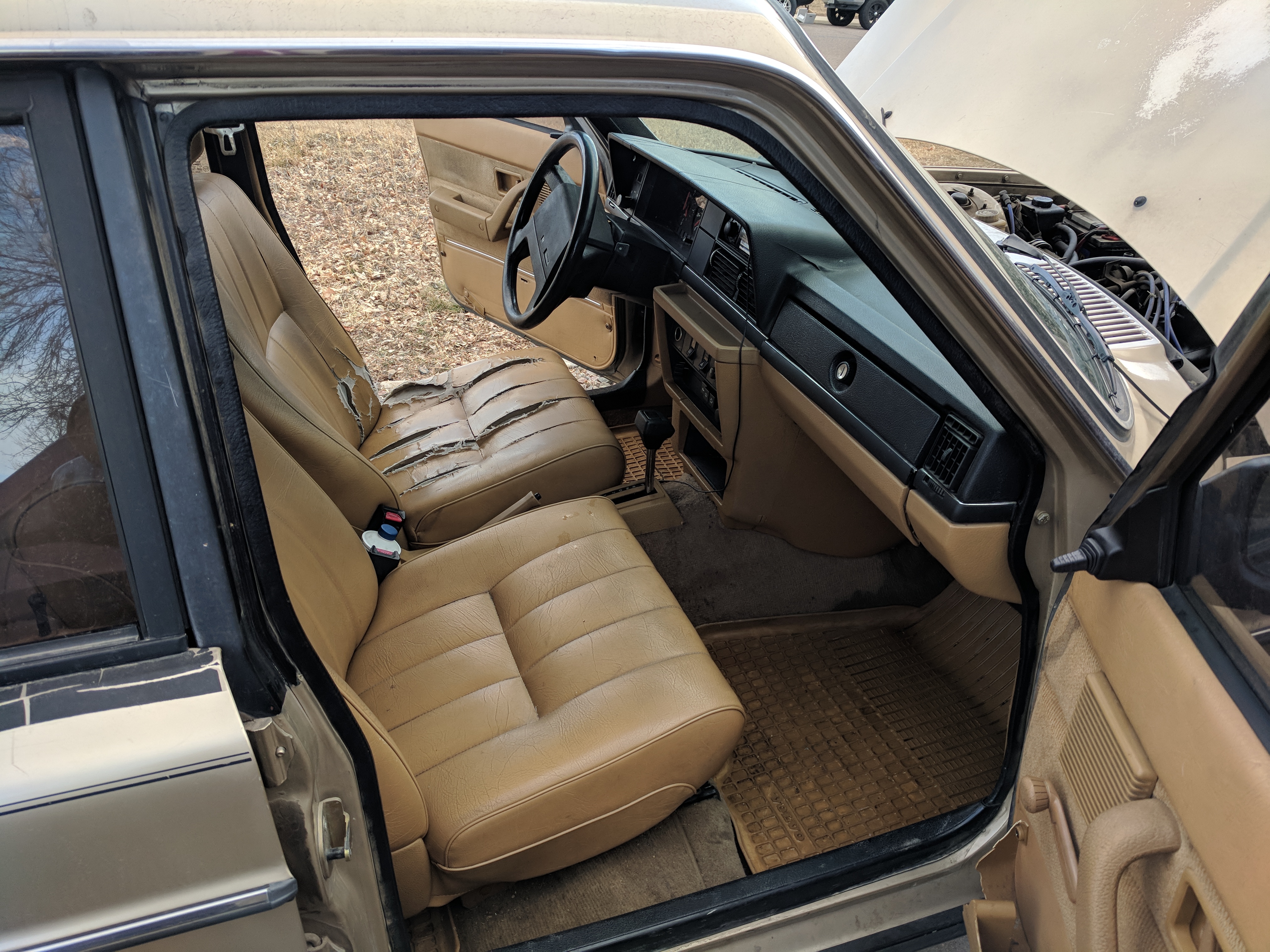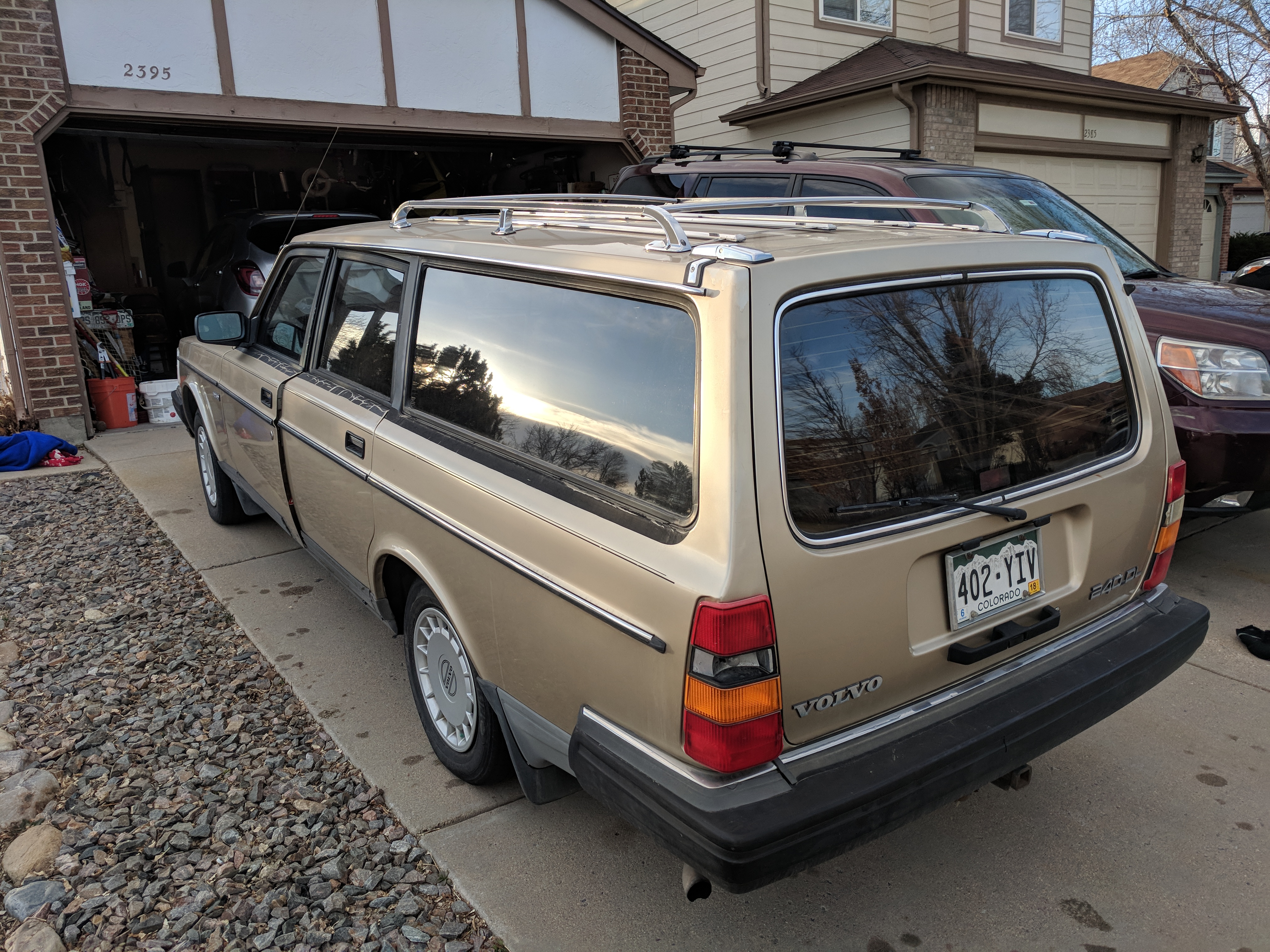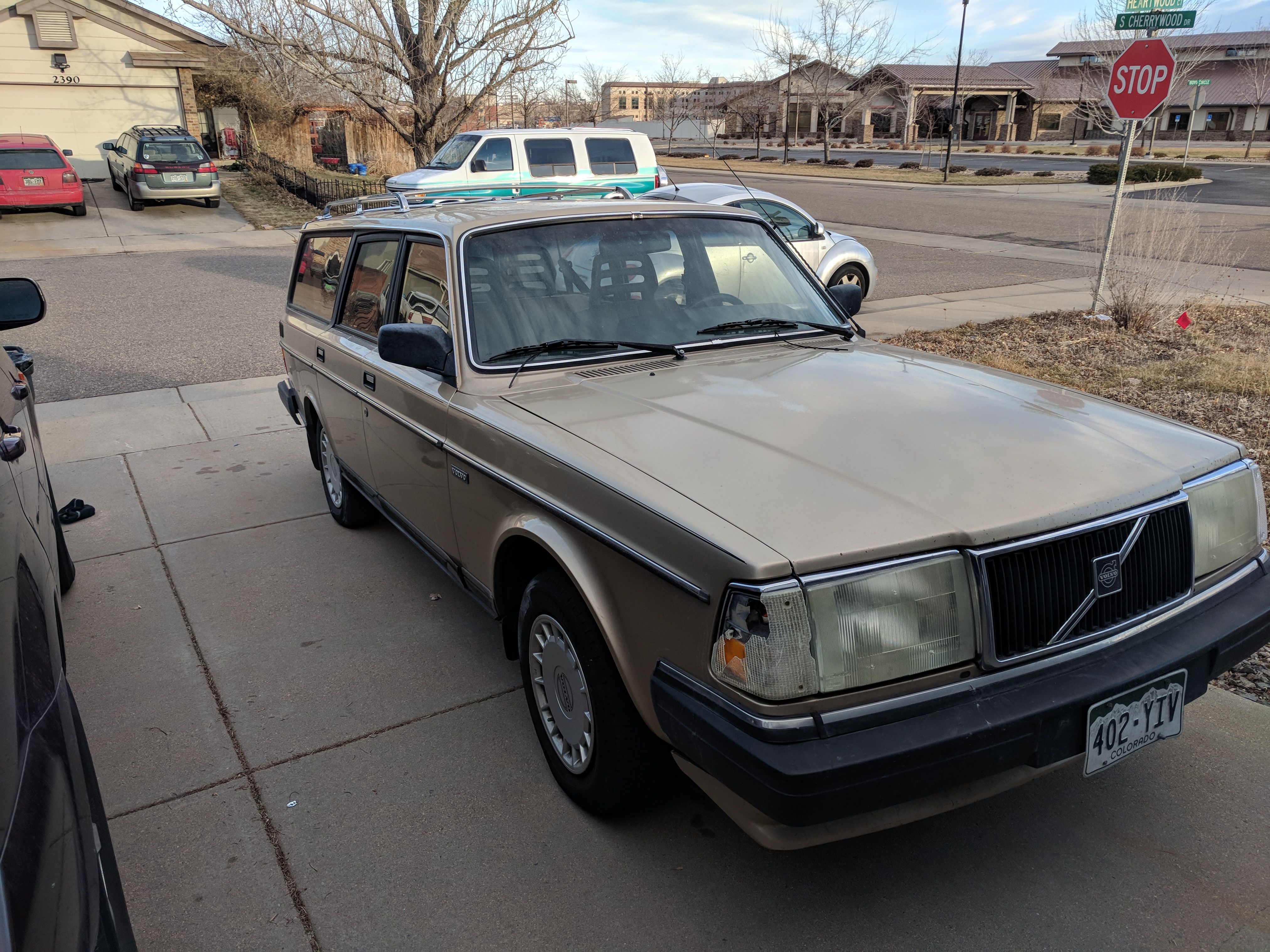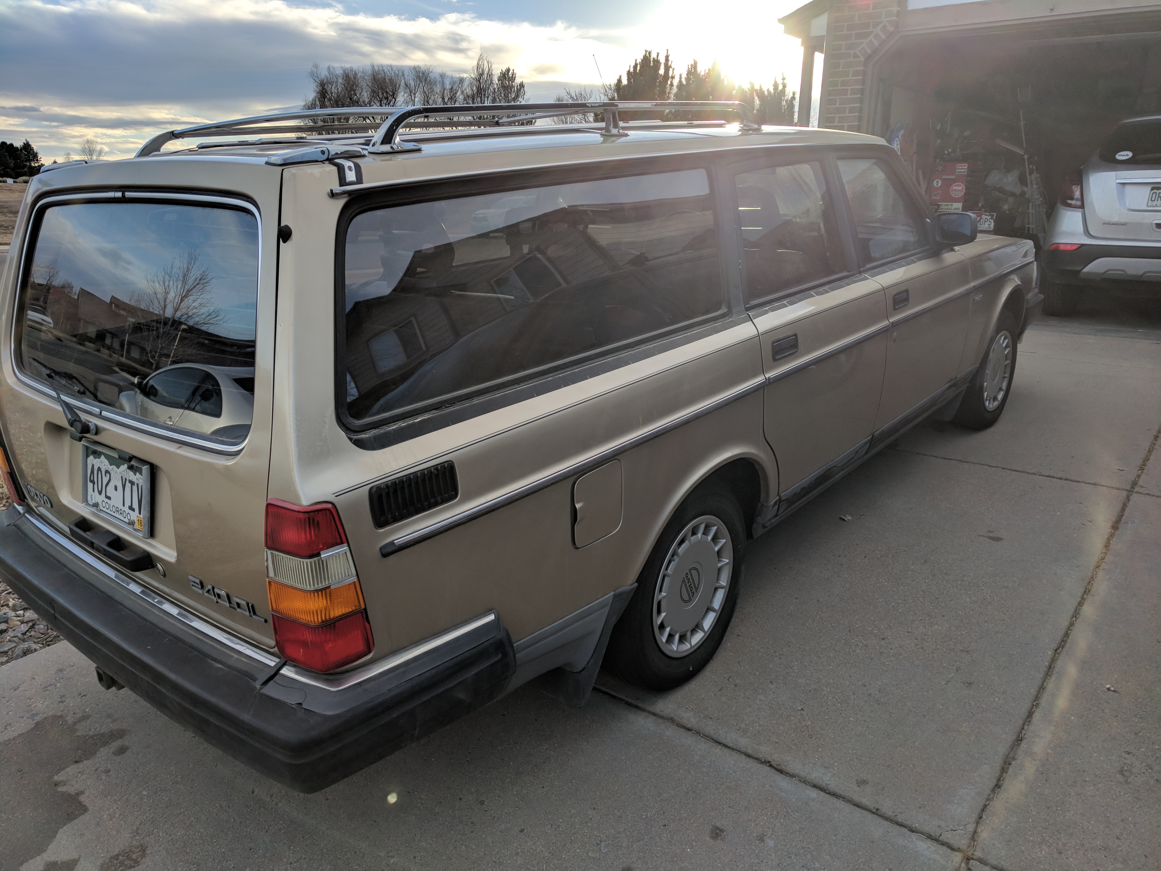 The car has 268k+ miles and a host of moderate to critical issues. The exhaust is busted off near the manifold, the tires are shot, there are a couple of broken lights, and it appears the transmission seals have finally given up. (When I moved it to clean it out, I found about a 1/4 cup of fluid on the driveway.) Honestly, if this were a Chevy from 1989, I'd have already sent it to scrap. But it's a classic Volvo 240 wagon
