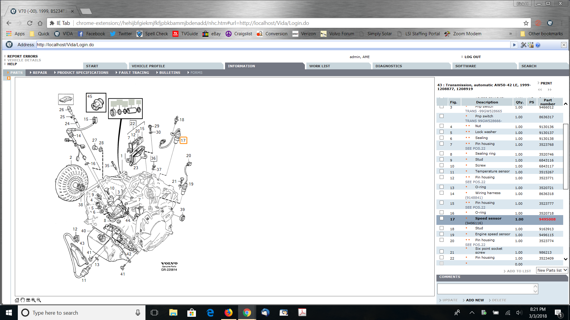 #17 is the Transmission speed sensor and is Volvo part number 9495008.