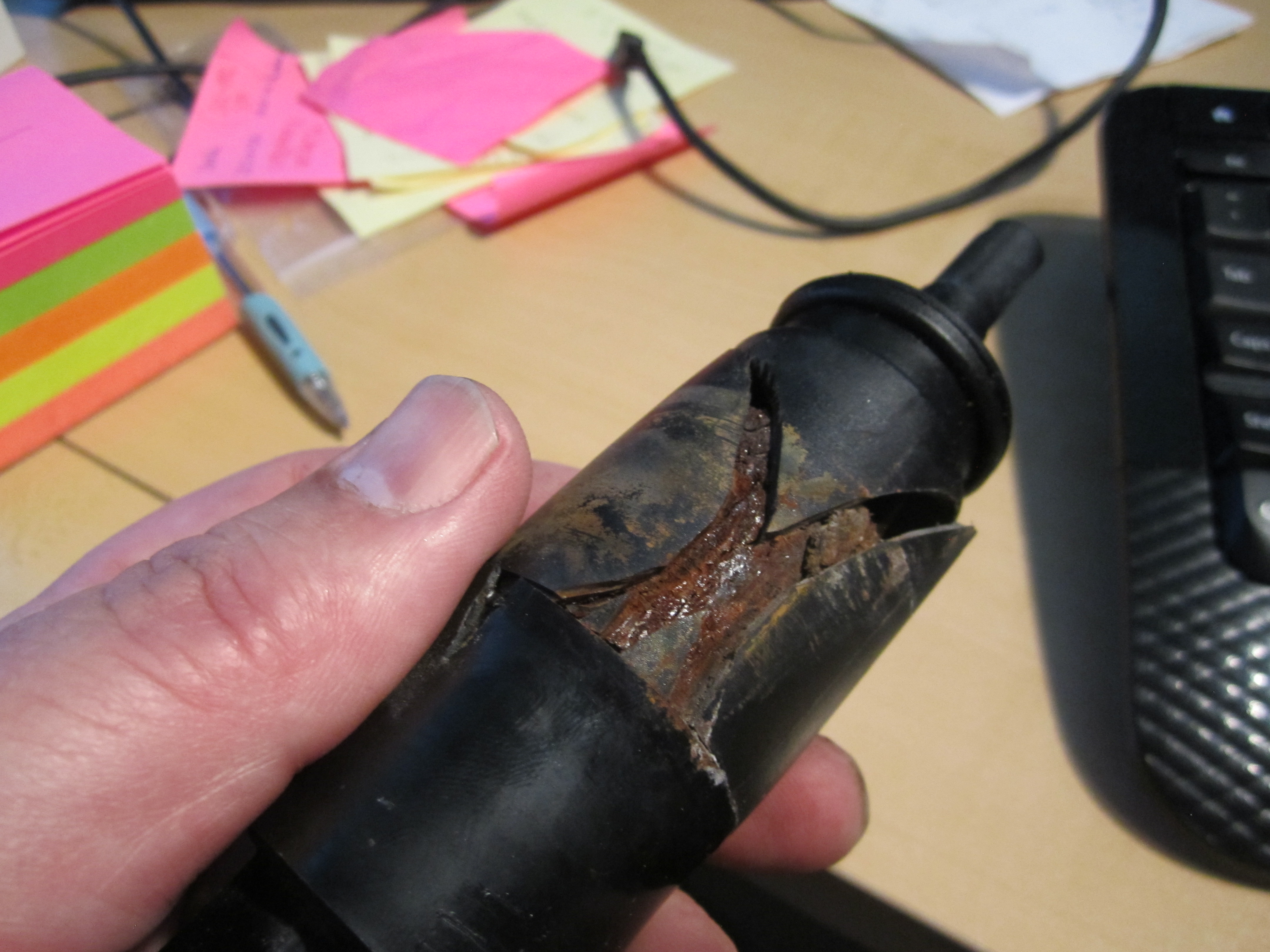 Dealer highlighted the headlight washers were not working. Bought a pump as it requires the front bumper cover to be removed to access the pump. Hoped that the pump would be repairable like those on my P80's but this is what I found. Looks like an Alien movie event.....: