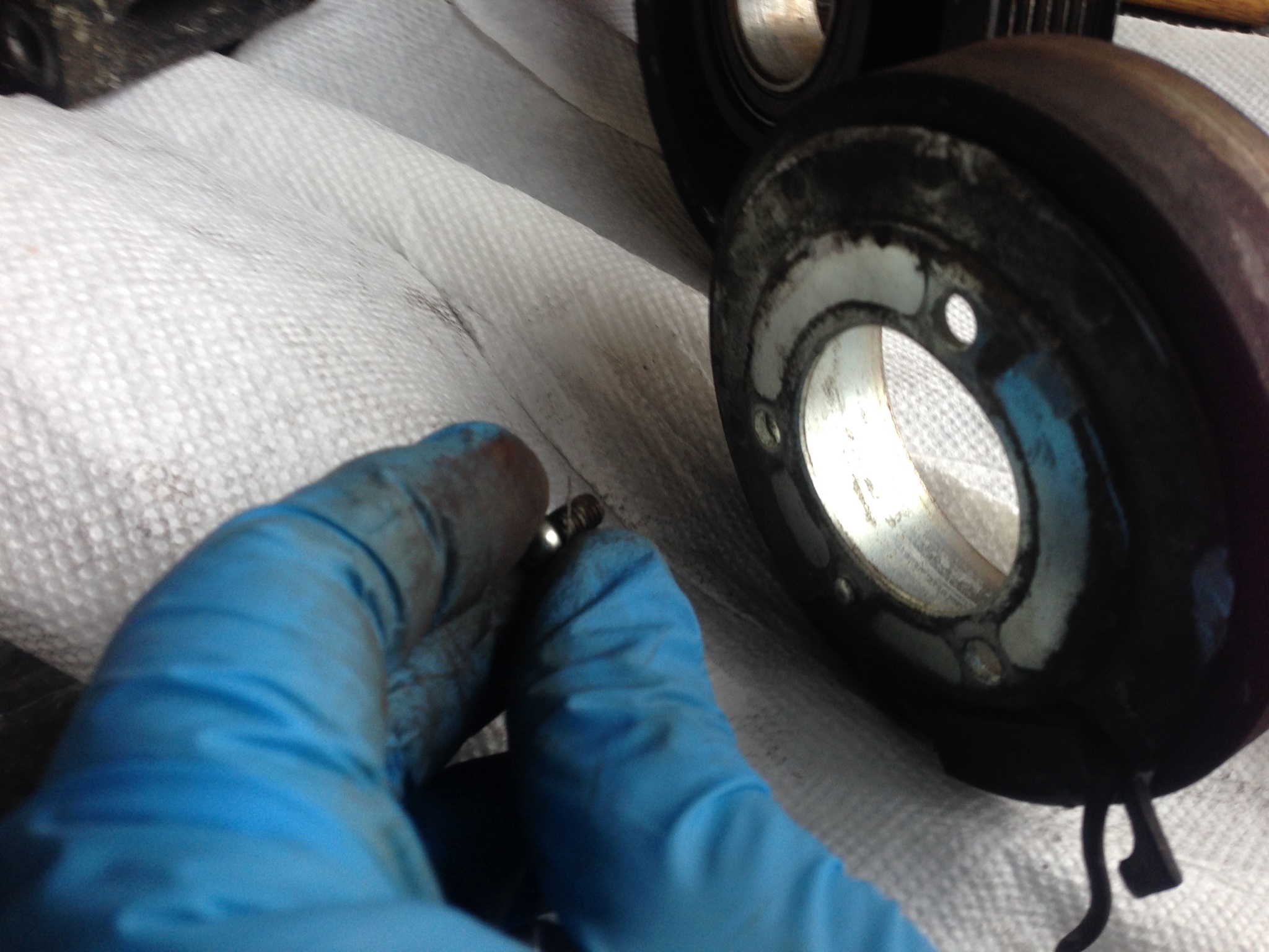 I’m not sure we use the same compressor on our cars but it is usually a single M6 bolt to remove the clutch, then a snap ring to release the pulley and bearing. Technically a puller is specified for the removal but I’ve done it on the bench with hand tools. Doing that from underneath might suck.